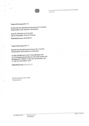 IN Ausschuss für Umwelt, Naturschutz und nukleare l " Sicherheit Tagesordnungspunkt 16 Vorbericht des Bundesministeriums für Umwelt, Naturschutz und nukleare Sicherheit zum EU-Ministerrat (Umwelt) am 20. Dezember 2018 in Brüssel Selbstbefassung 19(16)SB-52 Tagesordnungspunkt 17 Bericht des Bundesministeriums für Umwelt, Naturschutz und nukleare Sicherheit zu den Ergebnissen und Verhandlungen der 14. Vertragsstaatenkonferenz der Konvention für Biologische Vielfalt in Sharme El-Scheikh vom 17. bis 29. November 2018 Selbstbefassung 19(16)5B-55 Sylvia Kotting-Uhl, MdB Vorsitzende 19. Wahlperiode Tagesordnung 25. Sitzung Seite 11 von 11
