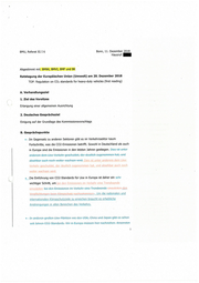 BMU, Referat IG16 Bonn, 11. Dezember 2018 Hausruf: ir 2 : es; le: Hintertreffen-zu-geraten--In anderen großen Lkw-Märkten wie den USA, China und Japan gibt es schon seit Jahren CO;-Standards. Wir in Europa müssen hier nachziehen, auch um unsere Technologieführerschaft bei effizienten Antrieben zu sichern. Was die Ausgestaltung betrifft, so halten wir den Vorschlag der europäischen Kommission für eine wirklich gute Grundlage, vor allem, was die vorgeschlagenen Minderungsziele für 2025 und 2030 betrifft. Über diese Ziele sollten wir nicht hinausgehen. Auch die technischen Änderungen, die in den Entwürfen der Ratspräsidentschaft eingebracht wurden, unterstützen wir. [Platzhalter Kommentar zu Anreizmechanismus] Auch die Weiterentwicklung des Simulationstools VECTO, mit dem die CO;- Emissionen der Lkw bestimmt werden, sollten wir möglichst verbindlich festschreiben. Wir sind sehr daran interessiert, heute mit Ihnen allen zu einer Einigung zu kommen. Und die gute Nachricht ist: unsere Positionen liegen deutlich näher aneinander als bei den CO>-Standards für Pkw. Ynd-die-gute-Naehriektist:-se jiEwie-kürzlieh-beider-CO>-Standard Akewehi Resiti : garniehtauseinander-Wir brauchen diese Regelung und sollten uns in der Einführung keine weiteren Verzögerungen erlauben — das wäre weder umwelt- noch industriepolitisch klug. C. Sachstand Derzeit abgestimmte Position der Bundesregierung Die Bundesregierung unterstützt den Vorschlag der Europäischen Kommission; dies gilt insbesondere für die vorgeschlagenen Minderungsziele für 2025 und 2030 gegenüber dem Basisjahr 2019. Deutschland ist der Auffassung, dass nicht über diese Ziele hinausgegangen werden sollte. Deutschland hat aber zu mehreren spezifischen Regelungsinhalten noch Prüfbedarf. DEU dankt der Österreichischen Ratspräsidentschaft für die Vorbereitung des neuen Textvorschlags. Die darin vorgeschlagenen Kompromisse wird die Bundesregierung prüfen. Dies gilt insbesondere für die Frage der