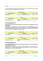 Seite 184 zwei mal hintereinander verwendet wird. Bei der Verwendung von aenderungsabsatz als einzelne Klasse wird auf die Angabe der artUndZaehlbezeichnung verzichtet. Eintrittskriterium Betroffene Klasse Bedingung Ref. Seite aenderungsabsatz Es wird nur ein Änderungsabsatz verwendet 2.7.3.79 88 Folgen Betroffene Klasse Konsequenz Ref. Seite Es wird keine Art- und Zählbezeichnung aus- 3.1.3 147 artUndZaehlbezeichnung gegeben 4.15 Konvention 15 Wird ein einzelner juristischer Absatz verwendet, dann wird die Art- und Zählbezeichnung nicht mit angegeben. Beschreibung: Ein juristischerAbsatz umfasst üblicherweise eine artUndZaehlbezeichnung. Eine Angabe der artUndZaehlbezeichnung ist jedoch erst notwendig, wenn juristischerAbsatz mindestens zwei mal hintereinander verwendet wird. Bei der Verwendung von juristischerAbsatz als einzelne Klasse wird auf die Angabe der artUndZaehlbezeichnung verzichtet. Eintrittskriterium Betroffene Klasse Bedingung Ref. Seite juristischerAbsatz Es wird nur ein juristischer Absatz verwendet 2.7.3.53 71 Folgen Betroffene Klasse Konsequenz Ref. Seite Es wird keine Art- und Zählbezeichnung aus- 3.1.3 147 artUndZaehlbezeichnung gegeben 4.16 Konvention 16 Wird ein Regelungsentwurf als Initiative des Bundestags erstellt, dann wird der Signaturblock für den Bundestag verwendet. Beschreibung: Ein Regelungsentwurf als Initiative des Bundestags (regelungsentwurf.initiant = "bundestag") umfasst optional einen signaturblockInitiantenBundestag, in dem die Initianten des Regelungsentwurfs namentlich aufgeführt werden. Eintrittskriterium Betroffene Klasse Bedingung Ref. Seite regelungsentwurf regelungsentwurf.initiant = "bundestag" 2.4.1 9 1.0 / Final Konventionen