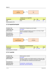 Seite 40 Konvention(en): Achtung: Das Objekt unterliegt folgenden Konventionen: • Auf allen Gliederungsebenen dürfen nur Gliederungselemente des gleichen Typs verwendet werden.: 4.11 Kindelemente von kapitel Kindelement AKN-Element Anz. Ref. Seite artUndZaehlbezeichnung <num> 1 3.1.3 147 Art- und Zählbezeichnung ueberschrift <heading> 1 3.1.1 145 Überschrift 2.7.3.2 kapitelAbschnitt Fachlicher Titel: Abschnitt als Untergliederung eines Kapitels LegalDocML-Tags: akn:chapter Dokumentation: Die Klasse "kapitelAbschnitt" wird benutzt, um die Klasse "Kapitel" weiter in Abschnitte zu untergliedern. Generalisierung: kapitel Spezialisierungen: - Wird genutzt von: - «chapter» «section» [2 , *] kapitelAbschnitt abschnitt Kindelemente von kapitelAbschnitt Kindelement AKN-Element Anz. Ref. Seite abschnitt <section> 2..* 2.7.3.10 44 Gliederungsebene Abschnitt 2.7.3.3 kapitelArtikel Fachlicher Titel: Artikel als Einzelvorschrift innerhalb eines Kapitels LegalDocML-Tags: akn:chapter Dokumentation: Die Klasse "kapitelArtikel" wird benutzt, um innerhalb der Untergliederung "Kapitel" einen Artikel als Einzelvorschrift einzufügen. Generalisierung: kapitel Spezialisierungen: - Wird genutzt von: - 1.0 / Final Regelungsentwurf