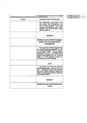 - 42 -.§earbeitunasstand· 26 1 0 201 6 1 0"43 Uhr� .. .. .. • { Formatiert: Schriftart: 9 Pt. . "" in '>n«: in· l'l • • -n :-?�� !.2. Uh . ·· ·{ Formatiert: Schriftart: 9 Pt. Entwurf Beschlüsse des 6. Ausschusses ln § 348 Absatz 1 Satz 2 N ummer 2 der Zivilprozessordnung in der Fassung der Bekanntmachung vom 5. Dezember 2005 (BGBI. I S. 3202; 2006 I S. 431 ; 2007 I S. 1 781), die zuletzt durch Artikel 2 des Gesetzes vom 5. Juli 201 6 (BGBI. I S. 1 578) geändert worden ist, werden in dem Satzteil vor Buchstabe a nach den Wörtern "der Kammer" die Wörter "nach § 72a Satz 1 des Gerichtsverfassungs- gesetzes oder" eingefügt.] Artikel 5 Artikel S lnkrafttreten I nkrafttreten Di es es G es etz tritt am . . . [ eins etz en: (1) Di es es G es etz tritt am . . . [ eins et- Datum d es erst en Tag es d es s echst en auf z en: Datum d es erst en Tag es d es s echst en di e V erkündung folg end en Kal end ermo- auf di e V erkündung folg end en Kal end er- nats] in Kraft. monats] in Kraft. (2) Die Artikel 5 bis 7 treten am 1 . Januar 2018 in Kraft.