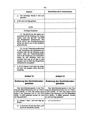 - 60 - Entwurf GebOhr oder Satz der Gebühr nach Nr. GabUhrentatbestand § 34 GNotKG - Tabelie B .,122 1 6 Verfa hren Ober den W iderruf eines Europäisc hen Nac hl asszeugnisses. 0,5 - höc hstens 400,00 € 1 22 1 7 Verfa hren Ober die Änderung enes i Europäisc hen Nachlasszeugnisses 1 ,0 1 22 1 8 Erteilung einer begl aubigten Absc hrift e ines Europäisc hen Nachlass- zeugn isses nac h Beendigung des Verfahrens auf Ausstellung des Europäisc hen Nachl asszeugn isses oder Verlängerung der Gültigkeits- trist einer beglaubigten Absc hrift eines Europäisc hen Nac hl asszeug- nisses. . . . . . . . . . . . . . . . . . . . . . . . . . . . . . . . . . . . . . . . . . . . . . . . . . . . . . . . . . . . . . . . . . . . . . . . . . . . . . . . . . . . . . . . . . . . . . . . . . . . . . 20,00 €". Neben der Gebü hr wird keine Dokumenten pauschale er hoben. Beschlüsse des 6. Ausschusses u n v e r ä n d e rt Entwurf Beschlüsse des 6. Ausschusses j) ln Vorbemerkung 1 .3 Absatz 1 j) u nv e rä n d e rt Nummer 2 werden die Wörter "einschließlich Verfahren nach § 47 Abs. 2 VAG" gestrichen. k) ln Vorbemerkung 1 .3.5 Nummer 1 k) u n ve rä n d e rt werden die Wörter "einschließlich der Verfahren nach· § 47 Abs. 2 VAG" gestrichen. I) Vorbemerkung 1 .4 wird wie folgt geändert: I) Vorbemerkung 1.4 Absatz 3 wird aa) Absatz 3 wird wie folgt ge- wie folgt gefasst: fasst: