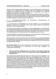 LANDTAG NORDRHEIN-WESTFALEN Drucksache 17/2055 17. Wahlperiode 28.02.2018 Antwort der Landesregierung auf die Kleine Anfrage 794 vom 7. Februar 2018 der Abgeordneten Mehrdad Mostofizadeh und Verena Schäffer BÜNDNIS 90/DIE GRÜNEN Drucksache 17/1924 Kennt die Landesregierung ihre eigene Gemeinsame Geschäftsordnung nicht? Vorbemerkung der Kleinen Anfrage Die Antwort der Landesregierung auf die Kleine Anfrage 628 „Ist der Verstoß gegen die Informationsrechte des Landtags wie im Fall Biesenbach für die Landesregierung eine Petitesse?“ zur deutlichen Fristüberschreitung der Beantwortung meiner Kleinen Anfrage 295 mit dem Titel: „Justizminister als Kreistagsmitglied, Fraktionsvorsitzender und Mitglied im Verwaltungsrat der Kreissparkasse Köln -Kann sich die Landesregierung einen Teilzeit- Justizminister ohne ungeteilten Einsatz für das Ministerium leisten?“ enthält in der Antwort auf Frage 2 eine Information, die der Nachfrage bedarf. Die Frage 2 der Kleinen Anfrage 628 lautete: „Hält die Landesregierung eine Überschreitung der Frist zur Beantwortung von Kleinen Anfragen um fast einen Monat und damit einen Verstoß gegen die Informationsrechte des Landtags für akzeptabel?“ Antwort der Landesregierung in Drucksache 17/1824: „Die von dem Fragesteller in Bezug genommene Frist von 4 Wochen zur Beantwortung einer Kleinen Anfrage findet sich in § 92 Abs. 3 der Geschäftsordnung des Landtags. Hierbei handelt es sich um sog. parlamentarisches Innenrecht, das kraft seiner Rechtsnatur die Landesregierung weder berechtigt noch verpflichtet.“ Diese Antwort erweckt den Eindruck, als ob die Landesregierung an die Frist von vier Wochen für die Beantwortung von Kleinen Anfragen nicht gebunden sei, da diese eine interne Angelegenheit des Landtags sei. Dem ist allerdings nicht so. Die Gemeinsame Geschäftsordnung der Landesregierung formuliert in „§ 32 Kleine Anfragen zur schriftlichen oder mündlichen Beantwortung; Große Anfragen“ Absatz 2: Datum des Originals: 25.02.2018/Ausgegeben: 05.03.2018 Die Veröffentlichungen des Landtags Nordrhein-Westfalen sind einzeln gegen eine Schutzgebühr beim Archiv des Landtags Nordrhein-Westfalen, 40002 Düsseldorf, Postfach 10 11 43, Telefon (0211) 884 - 2439, zu beziehen. Der kostenfreie Abruf ist auch möglich über das Internet-Angebot des Landtags Nordrhein-Westfalen unter www.landtag.nrw.de