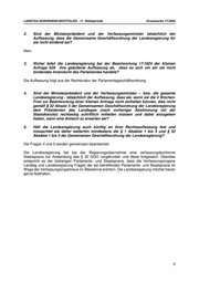 LANDTAG NORDRHEIN-WESTFALEN - 17. Wahlperiode Drucksache 17/2055 2. Sind der Ministerpräsident und der Verfassungsminister tatsächlich der Auffassung, dass die Gemeinsame Geschäftsordnung der Landesregierung für sie nicht bindend sei? Nein. 3. Woher leitet die Landesregierung bei der Beantwortung 17/1824 der Kleinen Anfrage 628 ihre geäußerte Auffassung ab, dass es sich um ein sie nicht bindendes Innenrecht des Parlamentes handele? Die Auffassung folgt aus der Rechtsnatur der Parlamentsgeschäftsordnung. 4. Sind der Ministerpräsident und der Verfassungsminister – bzw. die gesamte Landesregierung - tatsächlich der Auffassung, dass sie, wenn sie die 4 Wochen- Frist zur Beantwortung einer Kleinen Anfrage nicht einhalten können, dies nicht gemäß § 32 Absatz 3 der Gemeinsamen Geschäftsordnung der Landesregierung dem Präsidenten des Landtages (nach vorheriger Abstimmung mit der Staatskanzlei) rechtzeitig schriftlich mitteilen müssen und dabei anzugeben haben, wann eine Antwort zu erwarten sei? 5. Hält die Landesregierung auch künftig an ihrer Rechtsauffassung fest und missachtet sie daher weiterhin mindestens die § 1 Absätze 1 bis 3 und § 32 Absätze 1 bis 3 der Gemeinamen Geschäftsordnung der Landesregierung? Die Fragen 4 und 5 werden gemeinsam beantwortet: Die Landesregierung hat bei der Regierungsübernahme eine verfassungskonforme Staatspraxis zur Anwendung des § 32 GGO vorgefunden und diese fortgesetzt. Überdies entspricht es der bisherigen Parlaments- und Staatspraxis, dass die Verfassungsorgane Landtag und Landesregierung Fragen der sie betreffenden Parlaments- und Staatspraxis im Wege der Verfassungsorgantreue im Ältestenrat erörtern. Die Landesregierung möchte hieran gerne festhalten. 3
