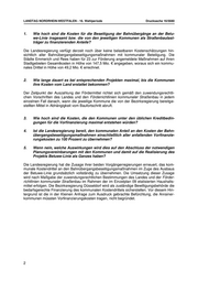 LANDTAG NORDRHEIN-WESTFALEN - 16. Wahlperiode Drucksache 16/5680 1. Wie hoch sind die Kosten für die Beseitigung der Bahnübergänge an der Betu- we-Linie insgesamt bzw. die von den jeweiligen Kommunen als Straßenbaulast- träger zu finanzierenden Anteile? Die Landesregierung verfügt derzeit noch über keine belastbaren Kostenschätzungen hin- sichtlich aller Bahnübergangsbeseitigungsmaßnahmen mit kommunaler Beteiligung. Die Städte Emmerich und Rees haben für 23 zur Förderung angemeldete Maßnahmen auf ihren Stadtgebieten Gesamtkosten in Höhe von 147,5 Mio. € angegeben, woraus sich ein kommu- nales Drittel in Höhe von 49,2 Mio. € errechnet. 2. Wie lange dauert es bei entsprechenden Projekten maximal, bis die Kommunen ihre Kosten vom Land erstattet bekommen? Der Zeitpunkt der Auszahlung der Fördermittel richtet sich gemäß den zuwendungsrechtli- chen Vorschriften des Landes und den Förderrichtlinien kommunaler Straßenbau in jedem einzelnen Fall danach, wann die jeweilige Kommune die von der Bezirksregierung bereitge- stellten Mittel in Abhängigkeit vom Baufortschritt abruft. 3. Wie hoch sind die Kosten, die den Kommunen unter den üblichen Kreditbedin- gungen für die Vorfinanzierung maximal entstehen würden? 4. Ist die Landesregierung bereit, den kommunalen Anteil an den Kosten der Bahn- übergangsbeseitigungsmaßnahmen einschließlich aller anfallenden Vorfinanzie- rungskosten zu 100 Prozent zu übernehmen? 5. Wenn nein, welche Auswirkungen wird dies auf den Abschluss der notwendigen Planungsvereinbarungen mit den Kommunen und damit auf die Realisierung des Projekts Betuwe-Linie als Ganzes haben? Die Landesregierung hat die Zusage ihrer beiden Vorgängerregierungen erneuert, das kom- munale Kostendrittel an den Bahnübergangsbeseitigungsmaßnahmen im Zuge des Ausbaus der Betuwe-Linie grundsätzlich vollständig zu übernehmen. Die Umsetzung dieser Zusage wird nach Maßgabe der zuwendungsrechtlichen Bestimmungen des Landes und der Förder- richtlinien kommunaler Straßenbau im Rahmen der im Einzelplan 09 etatisierten Haushalts- mittel erfolgen. Die Bezirksregierung Düsseldorf wird als zuständige Bewilligungsbehörde die bedarfsgerechte Finanzierung des kommunalen Kostendrittels sicherstellen. Vor diesem Hin- tergrund ist die in der Kleinen Anfrage zum Ausdruck gebrachte Befürchtung, die Anrainer- kommunen müssten Vorfinanzierungskosten tragen, nicht begründet. 2