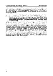 LANDTAG NORDRHEIN-WESTFALEN - 16. Wahlperiode Drucksache 16/2491 liche Einstellungsermächtigungen für Rechtspflegeranwärterinnen und Rechtspflegeranwär- ter etatisiert worden. Zur Übernahme der geprüften Anwärterinnen und Anwärter sollen in den Jahren 2014 bzw. 2015 in entsprechendem Umfang Planstellen des Amtsanwaltsdiens- tes eingerichtet werden. 5. Inwieweit besteht in anderen Bundesländern oder in NRW die Möglichkeit oder Überlegung, dass sich in der Strafrechtsstation als Sitzungsvertreter bewährte Rechtsreferendarinnen und -referendare auch danach bis zum Abschluss des Referendariats nebenamtliche Sitzungsvertretungen gegen gesonderte Vergü- tung durchführen? Die Frage, ob Rechtsreferendarinnen und -referendaren im Rahmen einer nebenamtlichen Sitzungsvertretung nach Abschluss der Strafstation eingesetzt werden sollen, ist in Nord- rhein-Westfalen gründlich geprüft worden. Im Ergebnis hat sich das Justizministerium gegen ein solches Modell entschieden, um den im Vordergrund stehenden Ausbildungszweck des Vorbereitungsdienstes nicht zu gefährden. Nach den Erfahrungen aus anderen Bundeslän- dern drängt sich ein solches Modell auch nicht auf. Nach den vorliegenden Erkenntnissen wird lediglich in Baden-Württemberg, Rheinland-Pfalz, Sachsen und dem Saarland entspre- chend verfahren. In Rheinland-Pfalz haben in den letzten Jahren nur zwischen 6 und 11 Re- ferendarinnen und Referendare von der Regelung Gebrauch gemacht. Hessen und Sach- sen-Anhalt ermöglichen den Referendaren zwar ebenfalls Sitzungsvertretungen nach Ab- schluss der Strafstation, gewähren aber hierfür keine Vergütung. In der Folge wird von dieser Möglichkeit nur äußerst selten Gebrauch gemacht. 4
