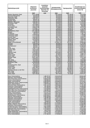 Investitions- Allgemeine pauschale Auszahlungen aus Schulpauschale/ Gebietskörperschaft Investitions- Sozialhilfeträger, Sportpauschale Investitionstätigkeit Bildungspauschale pauschale Altenhilfe und (Konto 78) Altenpflege EUR EUR EUR EUR EUR Menden (Sauerland), Stadt 2.514.129,86 - 1.287.240,00 144.784,00 9.014.529 Nachrodt-Wiblingwerde 454.942,93 - 300.000,00 60.000,00 2.058.390 Neuenrade, Stadt 836.943,87 - 300.000,00 60.000,00 1.545.241 Plettenberg, Stadt 1.638.105,47 - 700.980,00 69.562,00 4.797.465 Schalksmühle 658.581,34 - 300.000,00 60.000,00 2.797.395 Werdohl, Stadt 879.512,18 - 461.463,00 60.000,00 855.656 Attendorn, Hansestadt 1.599.349,14 - 529.933,00 65.797,00 21.475.465 Drolshagen, Stadt 930.233,74 - 300.000,00 60.000,00 2.575.064 Finnentrop 1.401.058,87 - 337.700,00 60.000,00 3.937.985 Kirchhundem 1.561.400,22 - 300.000,00 60.000,00 882.889 Lennestadt, Stadt 1.946.247,38 - 707.698,00 70.078,00 6.573.670 Olpe, Stadt 1.519.982,71 - 739.995,00 66.920,00 7.721.450 Wenden 1.247.846,45 - 395.060,00 60.000,00 8.428.570 Bad Berleburg, Stadt 2.811.682,29 - 548.020,00 60.000,00 3.860.817 Burbach 1.138.858,34 - 300.000,00 60.000,00 3.092.626 Erndtebrück 799.322,51 - 300.000,00 60.000,00 1.198.113 Freudenberg, Stadt 1.038.955,60 - 340.542,00 60.000,00 1.700.882 Hilchenbach, Stadt 1.151.434,89 - 300.000,00 60.000,00 1.127.800 Kreuztal, Stadt 1.632.352,23 - 890.112,00 84.758,00 5.929.577 Bad Laasphe, Stadt 1.548.289,33 - 320.647,00 60.000,00 2.854.608 Netphen, Stadt 1.872.632,82 - 460.946,00 63.203,00 7.080.465 Neunkirchen 778.660,76 - 405.137,00 60.000,00 2.437.177 Siegen, Universitätsstadt 4.398.197,35 - 2.709.611,00 275.173,00 10.836.255 Wilnsdorf 1.266.500,04 - 469.990,00 60.000,00 8.155.968 Anröchte 935.221,99 - 300.000,00 60.000,00 4.812.513 Bad Sassendorf 903.503,11 - 300.000,00 60.000,00 12.358.633 Ense 825.515,16 - 300.000,00 60.000,00 3.474.641 Erwitte, Stadt 1.249.171,58 - 377.749,00 60.000,00 4.585.447 Geseke, Stadt 1.487.818,60 - 707.181,00 60.000,00 6.594.845 Lippetal 1.396.284,20 - 332.791,00 60.000,00 4.334.689 Lippstadt, Stadt 3.212.493,43 - 1.834.226,00 182.764,00 20.831.456 Möhnesee 1.355.669,09 - 300.000,00 60.000,00 3.395.472 Rüthen, Stadt 1.607.852,36 - 351.653,00 60.000,00 2.269.121 Soest, Stadt 2.318.791,85 - 1.685.142,00 129.632,00 15.661.211 Warstein, Stadt 2.097.154,07 - 546.211,00 68.244,00 3.412.140 Welver 1.083.653,97 - 300.000,00 60.000,00 1.120.607 Werl, Stadt 1.657.645,87 - 789.345,00 83.527,00 4.047.605 Wickede (Ruhr) 622.653,09 - 300.000,00 60.000,00 2.085.608 Bergkamen, Stadt 2.029.653,89 - 1.250.033,00 131.876,00 5.599.915 Bönen 921.870,23 - 512.622,00 60.000,00 6.407.761 Fröndenberg/Ruhr, Stadt 1.159.503,87 - 540.527,00 60.000,00 2.964.230 Holzwickede 764.346,22 - 418.314,00 60.000,00 4.307.116 Kamen, Stadt 1.824.738,37 - 1.161.409,00 118.205,00 11.617.903 Lünen, Stadt 3.432.271,02 - 2.283.545,00 233.086,00 10.563.276 Schwerte, Hansest. an der Ruhr 2.053.805,81 - 1.241.765,00 126.870,00 7.935.485 Selm, Stadt 1.369.845,47 - 597.628,00 70.661,00 17.508.444 Unna, Stadt 2.689.760,41 - 1.997.521,00 157.061,00 6.522.346 Werne, Stadt 1.627.703,32 - 662.740,00 81.310,00 12.091.041 Kleve, Kreisverwaltung - 1.486.797,81 2.233.678,00 - 29.504.432 Mettmann, Kreisverwaltung - 2.761.795,39 2.350.207,00 - 30.929.781 Rhein-Kreis Neuss, Kreisverwaltung - 2.329.972,28 2.459.243,00 - 17.952.493 Viersen, Kreisverwaltung - 1.539.990,42 1.872.724,00 - 16.041.781 Wesel, Kreisverwaltung - 2.485.839,00 3.258.664,00 - 12.072.831 Städteregion Aachen. Regionsverwaltung - 2.660.625,13 5.256.702,00 - 18.318.796 Düren, Kreisverwaltung - 1.305.972,03 1.666.797,00 - 16.897.413 Rhein-Erft-Kreis, Kreisverwaltung - 2.351.123,19 2.305.508,00 - 11.145.106 Euskirchen, Kreisverwaltung - 957.903,63 1.094.748,00 - 19.556.005 Heinsberg, Kreisverwaltung - 1.221.829,23 2.054.106,00 - 11.435.882 Oberbergischer Kreis, Kreisverwaltung - 1.372.529,50 1.804.771,00 - 22.302.931 Rhein.-Berg. Kreis, Kreisverwaltung - 1.563.882,22 510.000,00 - 6.387.280 Rhein-Sieg-Kreis, Kreisverwaltung - 2.976.724,60 2.836.474,00 - 29.074.342 Borken, Kreisverwaltung - 1.619.791,47 3.482.420,00 - 16.888.207 Coesfeld, Kreisverwaltung - 1.036.079,55 1.594.193,00 - 22.226.401 Recklinghausen, Kreisverwaltung - 3.302.259,51 4.822.368,00 - 9.538.076 Steinfurt, Kreisverwaltung - 2.062.456,85 3.553.990,00 - 17.911.040 Warendorf, Kreisverwaltung - 1.365.980,48 1.706.070,00 - 8.417.133 Gütersloh, Kreisverwaltung - 1.665.731,65 3.244.712,00 - 16.900.223 Herford, Kreisverwaltung - 1.325.376,54 2.295.689,00 - 42.297.090 Höxter, Kreisverwaltung - 749.693,24 950.573,00 - 22.596.204 Lippe, Kreisverwaltung - 1.860.455,90 2.748.626,00 - 14.604.528 Minden-Lübbecke, Kreisverwaltung - 1.628.620,52 2.475.520,00 - 27.082.989 Paderborn, Kreisverwaltung - 1.270.146,46 2.495.674,00 - 20.988.010 Ennepe-Ruhr-Kreis, Kreisverwaltung - 1.833.798,96 1.920.007,00 - 4.456.165 Hochsauerlandkreis, Kreisverwaltung - 1.369.449,04 2.456.400,00 - 14.067.501 Märkischer Kreis, Kreisverwaltung - 2.170.539,97 3.196.137,00 - 10.212.043 Olpe, Kreisverwaltung - 639.475,63 1.059.092,00 - 11.568.259 Siegen-Wittgenstein, Kreisverwaltung - 1.418.057,33 2.673.955,00 - 10.918.024 Soest, Kreisverwaltung - 1.501.715,03 2.153.581,00 - 11.599.708 Unna, Kreisverwaltung - 2.107.960,43 2.739.066,00 - 31.758.982 Seite: 5