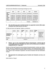 LANDTAG NORDRHEIN-WESTFALEN - 17. Wahlperiode Drucksache 17/656 Die Summe der öffentlichen Zuwendungen betragen pro Hub: 2016 2017 2018 2019 Gesamt Ruhr-ge- biet 111.270,62 € 471.078,75 € 471.078,75 € 366.956,56 € 1.420.384,68 € Düssel- dorf 53.298,75 € 534.442,50 € 494.067,50 € 376.931,87 € 1.458.740,62 € Köln 14.978,44 € 504.135,05 € 491.351,93 € 400.198,86 € 1.410.664,28 € Aachen 35.692,03 € 573.866,87 € 498.216,88 € 387.075,16 € 1.494.850,93 € Bonn 36.896,14 € 438.366,17 € 435.138,53 € 321.337,16 € 1.231.738,00 € Münster 83.427,96 € 354.566,87 € 310.015,63 € 241.647,16 € 989.657,62 € Summe: 8.006.036,13 € 3. Wie viele Start-ups sind im Umfeld der Hubs neu gegründet worden (Bitte aufge- schlüsselt nach HUB, Branche und Jahr)? Ich bitte die Antwort der folgenden Tabelle zu entnehmen: Düssel- Ruhrge- Aachen Bonn Köln Münster dorf biet Unternehmen, Projekte und Anzahl der ge- Teams, die gründeten Un- 16 22 29 6 10 22 aus Hub ternehmen Events ent- standen sind Branche vornehmlich Informationstechnologie und -dienste Jahr 2016/2017 4. Welche – ggf. von der ursprünglichen Planung abweichenden – Kriterien legt die Landesregierung bei der Evaluation der Hubs „auf ihre Wirksamkeit und Optimie- rungspotenziale hin“ zugrunde? Es gab zum Start des Programms keine konkreten Evaluationskriterien, sondern sog. Erfolgs- kriterien, die sich im Wesentlichen auf die Statistik beziehen. Die Evaluationskriterien müssen auf dieser Grundlage zunächst entwickelt werden und werden für die Zwischenevaluation ge- nutzt. Diese ist nach 18 Monaten vorgesehen. Die externe Evaluation wird nach 36 Monaten erfolgen. 5. Wie begründet die Landesregierung das Vorziehen der Evaluation um bis zu ein Jahr? Siehe Antwort zu Frage 4. 3