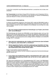 LANDTAG NORDRHEIN-WESTFALEN Drucksache 16/12994 16. Wahlperiode 23.09.2016 Antwort der Landesregierung auf die Kleine Anfrage 5078 vom 25. August 2016 der Abgeordneten Yvonne Gebauer und Henning Höne FDP Drucksache 16/12765 Wie weit ist die Landesregierung bei der Umsetzung des Programms „Gute Schule 2020“? Vorbemerkung der Kleinen Anfrage Anfang Juli 2016 erklärte Ministerpräsidentin Kraft, den Finanzminister mit der Auflage und Umsetzung eines Förderprogramms für kommunale Schulsanierungen beauftragt zu haben. In Kooperation mit der NRW.Bank solle den Kommunen in NRW im Rahmen des Programms „Gute Schule 2020“ eine zins- und tilgungsfreie Kreditlinie von insgesamt vier Milliarden Euro zur Verfügung gestellt werden, verteilt auf vier Tranchen von je 500 Millionen Euro in den Jahren 2017 bis 2020. Die Rückzahlung der Kredite wolle das Land übernehmen. Zunächst ist erfreulich, dass die Landesregierung die problematische bauliche Situation vieler Schulen in Nordrhein-Westfalen erkannt hat. Seit Jahren befindet sich die Mehrheit der Schul- gebäude in einem bedenklichen Zustand. So hat eine WDR-Umfrage unter mehr als 1000 Schulleitern jüngst ergeben, dass nur an 15% der Schulen kein Handlungsbedarf besteht. Auch der Verband Bildung und Erziehung (VBE) beklagt „erheblichen Sanierungsbedarf“, eine digitale Agenda in der Bildungspolitik sei laut dem Vorsitzenden des VBE, Udo Beckmann, ohnehin nur mit zusätzlichen Investitionen denkbar. Insofern ist eine Verbesserung der bauli- chen Situation an den nordrhein-westfälischen Schulen dringend geboten. Leider war den Er- klärungen der Ministerpräsidentin wenig Konkretes zur Umsetzung von „Gute Schule 2020“ zu entnehmen. Zusätzlich distanzierte sich der Landesvorsitzende von Bündnis 90/Die Grünen, Sven Lehmann, ausweislich diverser Presseberichte von den Äußerungen der Ministerpräsi- dentin. Die im Raum stehenden zwei Milliarden Euro seien keineswegs nur für Schulsanierun- gen vorgesehen, sondern sollten zusätzlich auch etwa für die Sanierung von Schwimmbädern und Fußballplätzen eingesetzt werden. Somit ist nach wie vor unklar, wie viel Geld effektiv für Schulsanierungen zur Verfügung stehen wird. Im Sinne der Planbarkeit von Maßnahmen in den Kommunen muss dies schnell nachgeholt werden. Auch wenn zusätzliche Investitionen in Schulgebäudesanierungen zu begrüßen sind, so stellt sich doch die Frage nach deren Finanzierung. Hier setzt die Landesregierung leider auf eine Schuldenfinanzierung und damit auf eine Verschiebung der Lasten auf die junge Generation. Datum des Originals: 22.09.2016/Ausgegeben: 28.09.2016 Die Veröffentlichungen des Landtags Nordrhein-Westfalen sind einzeln gegen eine Schutzgebühr beim Archiv des Landtags Nordrhein-Westfalen, 40002 Düsseldorf, Postfach 10 11 43, Telefon (0211) 884 - 2439, zu beziehen. Der kostenfreie Abruf ist auch möglich über das Internet-Angebot des Landtags Nordrhein-Westfalen unter www.landtag.nrw.de