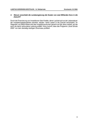 LANDTAG NORDRHEIN-WESTFALEN - 16. Wahlperiode Drucksache 16/12994 5. Warum verschiebt die Landesregierung die Kosten von zwei Milliarden Euro in die Zukunft? Durch die Finanzierung von Investitionen über Kredite, deren Laufzeit sich an der Lebensdauer der Investitionsgegenstände orientiert, werden keine Lasten in die Zukunft verschoben. Im Gegenteil: auf diese Weise wird das Investitionsvolumen gerecht auf die Jahre verteilt, auf die auch die damit verbundene Leistung entfällt. Hinzu kommt, dass das Programm „Gute Schule 2020“ von dem derzeitig niedrigen Zinsniveau profitiert. 3