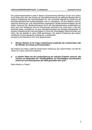 LANDTAG NORDRHEIN-WESTFALEN - 16. Wahlperiode Drucksache 16/2319 Die Justizministerkonferenz weist in diesem Zusammenhang allerdings auf die noch andau- ernde Diskussion über den Einsatz der Atemalkoholmessung als alleiniges Beweismittel zur sicheren Feststellung der Fahruntüchtigkeit hin. Sie vermochte deshalb die Einführung der Atemalkoholanalyse bei Verkehrsstraftaten nicht zu unterstützen. Ob eine effektive und kon- sequente Ahndung der unter Alkoholeinfluss begangenen Straßenverkehrsstraftaten bei teil- weiser Ersetzung der Blutalkoholanalyse durch die Atemalkoholanalyse gewährleistet ist, steht nach ihrer Auffassung nicht mit hinreichender Sicherheit fest, zumal auch in der Wis- senschaft weiter umstritten ist, ob eine Atemalkoholanalyse als alleiniges Beweismittel zur sicheren Feststellung der Fahruntüchtigkeit im Sinne der einschlägigen Strafvorschriften aus- reicht. Sie hat deshalb im Jahre 2008 beschlossen, die weitere Entwicklung des wissen- schaftlichen Forschungsstands aufmerksam zu beobachten. Insoweit ist die Diskussion noch nicht abgeschlossen. 4. Welcher Minister ist für Frage 3 federführend zuständig: Der Justizminister oder der Minister für Inneres und Kommunales? Die Antwort auf Frage 3 stellt die gemeinsame Auffassung des Justizministers und des Mi- nisters für Inneres und Kommunales dar. 5. In welcher Weise hat die Landesregierung mit welchem Ergebnis versucht, den Verzicht auf Blutproben bei Verkehrsdelikten auf Bundesebene durchzusetzen (womit sie nach Informationen des WDR gescheitert sein soll)? Siehe Antwort zu Frage 3. 3
