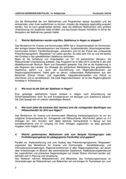 LANDTAG NORDRHEIN-WESTFALEN - 16. Wahlperiode Drucksache 16/6156 Um die Wirksamkeit der von Maßnahmen und Programmen besser beurteilen und die wirksamsten unter ihnen weiterführen zu können, müssen die Angebote regelmäßig evaluiert werden. Nur so kann gewährleistet werden, dass die effektiven Maßnahmen eine größere Unterstützung von staatlicher Seite erhalten und das Kosten-Nutzen-Verhältnis im Sinne der Akzeptanz der Maßnahmen gewahrt bleibt. 1. Welche Maßnahmen werden ergriffen, Salafismus in Hagen zu stoppen? Das Ministerium für Inneres und Kommunales NRW hat in Zusammenarbeit mit Kommunen, den dortigen lokalen Netzwerkpartnern wie Vereinen, Sozialverbänden, Moscheegemeinden, kommunalen Ämtern, Familienberatungen, Jobcentern und mit der Polizei das umfassende Präventionsprogramm "Wegweiser" ins Leben gerufen. Es setzt sehr früh an und will bereits den Einstieg in den gewaltbereiten Salafismus verhindern. Basis ist die Schaffung von Anlaufstellen vor Ort mit persönlichen Beratern, die Ratsuchenden Unterstützung anbieten. Das Programm ist im März 2014 zunächst in den drei Modellkommunen Bochum, Bonn und Düsseldorf gestartet. Das Ziel ist die Ausdehnung in alle Regionen des Landes. Zur Strategie der präventiven Bekämpfung des gewaltbereiten Salafismus gehört u.a. auch die Durchführung von Regionalkonferenzen auf Regierungsbezirksebene. Dabei geht es darum, insbesondere Multiplikatoren aus den Bereichen Schule, Kinder- und Jugendhilfe, Integrationsfachstellen und Polizei zu informieren und zu sensibilisieren. Die erste Regionalkonferenz ist für den Regierungsbezirk Arnsberg in Vorbereitung. 2. Wie hoch ist die Zahl der Salafisten in Hagen? Eine gefestigte salafistische Szene existiert in Hagen nach Einschätzung der Sicherheitsbehörden nicht. Es sind Einzelpersonen mit Bezügen zum Salafismus bekannt. Die Zahl bewegt sich im unteren zweistelligen Bereich. 3. Wie hoch (bitte die konkrete Zahl nennen) sind die vorliegenden Nachfragen von Hilfesuchenden für 2013 aus Hagen? Das Ministerium für Inneres und Kommunales (Abteilung Verfassungsschutz) ist nur ein möglicher Ansprechpartner für Anfragende und Hilfesuchende. Wöchentlich gehen ca. 2-3 Anfragen ein. Den Anrufern wird dabei absolute Vertraulichkeit in Bezug auf ihre Kontaktaufnahme und im Umgang mit ihren Anliegen zugesichert, so dass genauere Angaben nicht möglich sind. 4. Welche gemeinsamen Maßnahmen (wie zum Beispiel Fachtagungen oder Fortbildungsangebote für pädagogische Fachkräfte) sind geplant? Parallel zur Implementierung und zum Ausbau des Präventionsprogramms "Wegweiser" organisiert das Ministerium für Inneres und Kommunales Sensibilisierungs- und Informationsveranstaltungen. Regional-konferenzen in allen Regierungsbezirken, auf denen über Entwicklungen im Bereich des extremistischen Salafismus, Radikalisierungstendenzen bei Jugendlichen und präventive Gegenstrategien auf lokaler Ebene informiert werden soll, befinden sich in Planung und Umsetzung. Des Weiteren nehmen Mitarbeiterinnen und Mitarbeiter des Verfassungsschutzes an Veranstaltungen als Referentinnen und Referenten teil und bringen ihr Fachwissen ein, zum 2