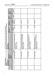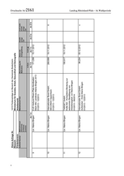 LANDTAG RHEINLAND-PFALZ 16. Wahlp erio d e Drucksache 16/ 2161 21. 03. 2013 Kleine Anfrage der Abgeordneten Dorothea Schäfer (CDU) und Antwort des Ministeriums der Finanzen Förderanträge im Bereich der Gemeinde Budenheim Die Kleine Anfrage 1410 vom 27. Februar 2013 hat folgenden Wortlaut: Ich frage die Landesregierung: 1. Für welche Vorhaben aus der Gemeinde Budenheim liegen der Landesregierung in welcher Größenordnung und seit wann aktuell Förderanträge vor? 2. Welche dieser Anträge sind bewilligungsreif und welche noch nicht? 3. Welche Schritte sind im letzteren Fall erforderlich, um die Bewilligungsreife zu erlangen? 4. Wie hoch ist der jeweils beantragte, der bereits bewilligte bzw. der zu erwartende Landeszuschuss? 5. Zu welchen Terminen erfolgten und erfolgen die Zahlungen und in welcher Höhe? 6. In welcher Höhe mussten oder müssen die jeweiligen Zuwendungsempfänger für die beantragten Landeszuschüsse in Vorlage treten oder eine Vorfinanzierung vornehmen? Das Ministerium der Finanzen hat die Kleine Anfrage namens der Landesregierung mit Schreiben vom 20. März 2013 wie folgt beantwortet: Die Antworten auf die Fragen 1 bis 6 ergeben sich aus der nachfolgenden Übersicht*), in der das Ergebnis einer entsprechenden Ressortumfrage dargestellt ist. Für die Geschäftsbereiche des Ministeriums für Bildung, Wissenschaft, Weiterbildung und Kultur, des Ministeriums für Umwelt, Landwirtschaft, Ernährung, Weinbau und Forsten und des Ministeriums für Wirtschaft, Klimaschutz, Energie und Landesplanung melde ich Fehlanzeige. In Vertretung: Dr. Salvatore Barbaro Staatssekretär *) Hinweis der Landtagsverwaltung: Ausführliche Internetausgabe, die Original-Drucksache ist ohne den Abdruck der Übersicht erschienen. Druck: Landtag Rheinland-Pfalz, 29. April 2013