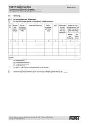 EVB-IT Systemvertrag Seite 21 von 44 Vertragsnummer/Kennung Auftraggeber _______ Vertragsnummer/Kennung Auftragnehmer _______ 4.8.2 Schulungsunterlagen Es werden folgende Schulungsunterlagen geschuldet: 1 Lfd. Nr. Schulung (hier Schulungsunterlage EXP Menge lfd. Nr. aus Nummer 4.8.1 eintragen) 1 2 3 4 5 1 US = Schulungsunterlage unterliegt US-amerikanischen Exportkontrollvorschriften EU = Schulungsunterlage unterliegt EU-Exportkontrollvorschriften DT = Schulungsunterlage unterliegt deutschen Exportkontrollvorschriften S = Schulungsunterlage unterliegt Exportkontrollvorschriften Soweit für die Individualsoftware* in Nummer 4.5.3 ausschließliche Nutzungsrechte vereinbart sind, gilt dies abweichend von Ziffer 2.5 EVB-IT System-AGB nicht für die Schulungsunterlagen gemäß Nummer 4.8.2 lfd. Nr. , die für den Auftraggeber individuell erstellt wurden. An diesen Schu- lungsunterlagen werden lediglich nicht ausschließliche Nutzungsrechte * gemäß Ziffer 2.3.2.1 EVB- IT System-AGB eingeräumt. Für folgende Schulungsunterlagen werden von Ziffer 2.5 EVB-IT System-AGB abweichende weiter- gehende Nutzungsrechte vereinbart: Für die Schulungsunterlagen gemäß Nummer 4.8.2 lfd. Nr. wird statt des nicht aus- schließlichen Nutzungsrechts ein ausschließliches Nutzungsrecht gewährt. Für die Schulungsunterlagen gemäß Nummer 4.8.2 lfd. Nr. wird zusätzlich das Recht zur Vervielfältigung und Verbreitung gewährt. Für die Schulungsunterlagen gemäß Nummer 4.8.2 lfd. Nr. wird zusätzlich das Recht zur Bearbeitung sowie Vervielfältigung und Verbreitung der Bearbeitungen gewährt. Nutzungsrechte an den Schulungsunterlagen ergeben sich aus Anlage Nr. . 4.8.3 Vergütung für Schulungen inkl. Schulungsunterlagen Die in Nummer 4.8.1 vereinbarte Vergütung für die Schulungen inkl. der Schulungsunterlagen ist nicht im Pauschalfestpreis* enthalten. Die Vergütung für die Schulungen inkl. der Schulungsunterlagen gemäß Nummer 4.8.1 lfd. Nr. bis ist nicht im Pauschalfestpreis* enthalten. 4.9 Dokumentation Ergänzend/abweichend von Ziffer 5.3 EVB-IT System-AGB ist die Dokumentation in folgender Spra- che / in folgender Form zu erstellen: . Ergänzend/abweichend von Ziffer 5.3 EVB-IT System-AGB sind folgende Teile der Dokumentation: bis zum zu liefern. Die mit * gekennzeichneten Begriffe sind am Ende der EVB-IT System-AGB definiert. Version 2.01 vom 09.01.2013