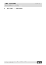 EVB-IT Systemvertrag Seite 27 von 44 Vertragsnummer/Kennung Auftraggeber _______ Vertragsnummer/Kennung Auftragnehmer _______ 5.4 Vergütung/Zahlungsfristen für Systemserviceleistungen 5.4.1 Vergütung Der Systemservice ist (bei fester Laufzeit) insgesamt mit dem Pauschalfestpreis* abgegolten. 5 6 Der Vergütungsanteil für den Systemservice am Pauschalfestpreis* beträgt Euro . Die gesonderte Vergütung für den Systemservice insgesamt (bei fester Laufzeit) beträgt pauschal Euro. Die gesonderte monatliche Vergütung für den Systemservice beträgt pauschal Euro. Für den Zeitraum bis zum Ablauf der Verjährungsfrist der Sachmängelansprüche für das Ge- samtsystem wird eine abweichende monatliche Vergütung in Höhe von pauschal Euro vereinbart. Die Vergütung für die Systemserviceleistungen gemäß Nummer(n) (hier die relevanten Num- mer(n) aus Nummer 5.1 eintragen) erfolgt gesondert nach Aufwand gemäß Nummer 7 mit einer Obergrenze in Höhe von Euro. Dabei ist Personal der Kategorie(n) einzusetzen. Die Vergütung erfolgt gemäß Anlage Nr. . 5.4.2 Zahlungsfristen für Systemserviceleistungen monatlich (zahlbar bis zum 15. eines jeden Monats) quartalsweise (zahlbar bis zum 15. des zweiten Quartalsmonats) jährlich (zahlbar bis zum ) einmalig zum gemäß Anlage Nr. 5.5 Sonstige Regelungen zu Systemserviceleistungen 5.5.1 Teleservice* Der Auftragnehmer erbringt Teile der Leistung mittels Teleservice* entsprechend der Teleservicever- einbarung gemäß Anlage Nr. . 5.5.2 Abnahme der Systemserviceleistungen Abweichend von Ziffer 4.3 EVB-IT System-AGB vereinbaren die Parteien eine Abnahme bestimmter Systemserviceleistungen gemäß Anlage Nr. . 5.5.3 Dokumentation der Systemserviceleistungen Abweichend von Ziffer 4.5 Satz 1 EVB-IT System-AGB ist der Auftragnehmer in dem in Anlage Nr. aufgeführten Umfang verpflichtet, die im Rahmen des Systemservices durchgeführten Maß- nahmen zu dokumentieren. 6 Weitere Leistungen nach der Abnahme 6.1 Weiterentwicklung und Anpassung des Gesamtsystems nach der Abnahme 6.1.1 Der Auftragnehmer verpflichtet sich, das Gesamtsystem jeweils nach den Vereinbarungen in Anlage Nr. weiterzuentwickeln, zu optimieren und an die sich ändernden Bedürfnisse des 5 Wird nach Zuschlagserteilung eingetragen = „B) Preis für den Betrieb pro Monat (in den ersten 8 Monaten“ gem. Preisblatt. 6 Der Auftragnehmer hat den Anteil des Systemservices an dem Pauschalfestpreis* anzugeben, selbst wenn in Nummer 1.2 keine gesonderte Ausweisung von Preisanteilen vorgesehen ist. Dies allein, um die Berechnung der Haftungsobergrenze gemäß Ziffer 15.2 EVB-IT System-AGB und - bei Vereinbarung einer gesonderten Ausweisung - eine Bewertung des Pauschalfestpreises* zu ermöglichen. Die mit * gekennzeichneten Begriffe sind am Ende der EVB-IT System-AGB definiert. Version 2.01 vom 09.01.2013