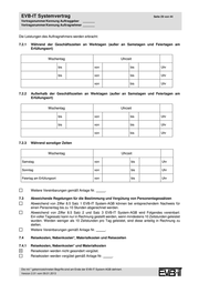 EVB-IT Systemvertrag Seite 29 von 44 Vertragsnummer/Kennung Auftraggeber _______ Vertragsnummer/Kennung Auftragnehmer _______ Die Leistungen des Auftragnehmers werden erbracht: 7.2.1 Während der Geschäftszeiten an Werktagen (außer an Samstagen und Feiertagen am Erfüllungsort) Wochentag Uhrzeit bis von bis Uhr bis von bis Uhr von bis Uhr 7.2.2 Außerhalb der Geschäftszeiten an Werktagen (außer an Samstagen und Feiertagen am Erfüllungsort) Wochentag Uhrzeit bis von bis Uhr bis von bis Uhr von bis Uhr 7.2.3 Während sonstiger Zeiten Wochentag Uhrzeit Samstag von bis Uhr Sonntag von bis Uhr Feiertag am Erfüllungsort von bis Uhr Weitere Vereinbarungen gemäß Anlage Nr. . 7.3 Abweichende Regelungen für die Bestimmung und Vergütung von Personentagessätzen Abweichend von Ziffer 8.5 Satz 1 EVB-IT System-AGB können bei entsprechendem Nachweis für einen Personentag bis zu 10 Stunden abgerechnet werden. Abweichend von Ziffer 8.5 Satz 2 und Satz 3 EVB-IT System-AGB wird Folgendes vereinbart: Ein voller Tagessatz kann nur in Rechnung gestellt werden, wenn mindestens 10 Zeitstunden geleistet wurden. Werden weniger als 10 Zeitstunden pro Tag geleistet, sind diese anteilig in Rechnung zu stellen. Weitere Vereinbarungen gemäß Anlage Nr. . 7.4 Reisekosten, Nebenkosten*, Materialkosten und Reisezeiten 7.4.1 Reisekosten, Nebenkosten* und Materialkosten Reisekosten werden nicht gesondert vergütet. Reisekosten werden vergütet gemäß Anlage Nr. . Die mit * gekennzeichneten Begriffe sind am Ende der EVB-IT System-AGB definiert. Version 2.01 vom 09.01.2013