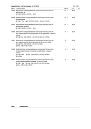 Beleuchtung - § 17 Abs. 1, 2 StVO Seite 113/ 0 TBNR Tatbestandstext FaP-Pkt Euro FV 117125 Sie fuhren nur mit Begrenzungsleuchten (Standlicht), obwohl Sie die ( B- 1) 15,00 vorgeschriebenen Beleuchtungseinrichtungen (Abblendlicht) benutzen mussten und gefährdeten +) dadurch andere. § 17 Abs. 2, § 1 Abs. 2, § 49 StVO; § 24 StVG; 74.1 BKat; § 19 OWiG 117126 Sie fuhren nur mit Begrenzungsleuchten (Standlicht), obwohl Sie die ( B- 1) 35,00 vorgeschriebenen Beleuchtungseinrichtungen (Abblendlicht) benutzen mussten. Es kam zum Unfall. § 17 Abs. 2, § 1 Abs. 2, § 49 StVO; § 24 StVG; 74.2 BKat; § 19 OWiG 117130 Sie fuhren mit Fernlicht, obwohl die Straße mit durchgehender aus- ( B- 1) 10,00 reichender Beleuchtung versehen war. § 17 Abs. 2, § 49 StVO; § 24 StVG; 74 BKat 117131 Sie fuhren mit Fernlicht, obwohl die Straße mit durchgehender aus- ( B- 1) 15,00 reichender Beleuchtung versehen war und gefährdeten +) dadurch andere. § 17 Abs. 2, § 1 Abs. 2, § 49 StVO; § 24 StVG; 74.1 BKat; § 19 OWiG 117132 Sie fuhren mit Fernlicht, obwohl die Straße mit durchgehender aus- ( B- 1) 35,00 reichender Beleuchtung versehen war. Es kam zum Unfall. § 17 Abs. 2, § 1 Abs. 2, § 49 StVO; § 24 StVG; 74.2 BKat; § 19 OWiG TBNR Bemerkungen