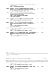 109102 Sie bogen ab, ohne die Fahrtrichtungsänderung rechtzeitig und deutlich (A - 1) 35,00 anzukündigen. Es kam zum Unfall. § 9 Abs. 1, § 1 Abs. 2, § 49 StVO; § 24 StVG; 29 BKat; § 19 OWiG 109106 Sie bogen nach links/rechts *) ab, ohne sich vorher ordnungsgemäß (A - 1) 10,00 eingeordnet zu haben. § 9 Abs. 1, § 49 StVO; § 24 StVG; 35 BKat 109107 Sie bogen nach links/rechts *) ab, ohne sich vorher ordnungsgemäß (A - 1) 30,00 eingeordnet zu haben und gefährdeten +) dadurch andere. § 9 Abs. 1, § 1 Abs. 2, § 49 StVO; § 24 StVG; 35.1 BKat; § 19 OWiG 109108 Sie bogen nach links/rechts *) ab, ohne sich vorher ordnungsgemäß (A - 1) 35,00 eingeordnet zu haben. Es kam zum Unfall. § 9 Abs. 1, § 1 Abs. 2, § 49 StVO; § 24 StVG; 35.2 BKat; § 19 OWiG 109112 Sie bogen nach links/rechts *) ab, ohne auf den nachfolgenden Verkehr zu (A - 1) 10,00 achten. § 9 Abs. 1, § 49 StVO; § 24 StVG; 35 BKat 109113 Sie bogen nach links/rechts *) ab, ohne auf den nachfolgenden Verkehr zu (A - 1) 30,00 achten und gefährdeten +) dadurch andere. § 9 Abs. 1, § 1 Abs. 2, § 49 StVO; § 24 StVG; 35.1 BKat; § 19 OWiG 109114 Sie bogen nach links/rechts *) ab, ohne auf den nachfolgenden Verkehr zu (A - 1) 35,00 achten. Es kam zum Unfall. § 9 Abs. 1, § 1 Abs. 2, § 49 StVO; § 24 StVG; 35.2 BKat; § 19 OWiG 109118 Sie ordneten sich nach links auf den Schienen ein und behinderten +) dadurch (A - 1) 10,00 ein Schienenfahrzeug. § 9 Abs. 1, § 49 StVO; § 24 StVG; 36 BKat TBNR Bemerkungen 109106 *) Zutreffendes angeben bis 109114 12.1.19 Abbiegen, Wenden und Rückwärtsfahren - § 9 Abs. 2 StVO Seite 54 / 0 TBNR Tatbestandstext FaP-Pkt Euro FV 109124 Sie blieben als auf der Fahrbahn abbiegender Radfahrer nicht an der rechten (A - 1) 10,00 Seite eines in gleicher Richtung abbiegenden Fahrzeuges, obwohl ausreichender Raum vorhanden war. § 9 Abs. 2, § 49 StVO; § 24 StVG; 37 BKat 109125 Sie blieben als auf der Fahrbahn abbiegender Radfahrer nicht an der rechten (A - 1) 15,00 Seite eines in gleicher Richtung abbiegenden Fahrzeuges und behinderten +) dadurch andere. § 9 Abs. 2, § 1 Abs. 2, § 49 StVO; § 24 StVG; 37.1 BKat; § 19 OWiG
