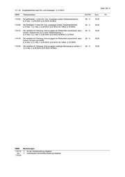 Seite 108 / 0 12.1.34 Sorgfaltspflichten beim Ein- und Aussteigen - § 14 StVO TBNR Tatbestandstext FaP-Pkt Euro FV 114100 Sie gefährdeten +) beim Ein- bzw. Aussteigen andere Verkehrsteilnehmer. (B - 1) 10,00 § 14 Abs. 1, § 49 StVO; § 24 StVG; 64 BKat 114106 Sie schädigten +) beim Ein- bzw. Aussteigen andere Verkehrsteilnehmer. (B - 1) 25,00 § 14 Abs. 1, § 1 Abs. 2, § 49 StVO; § 24 StVG; 64.1 BKat; § 19 OWiG 114112 Sie verließen Ihr Fahrzeug, ohne es gegen ein Weiterrollen ausreichend abzu- (B - 1) 15,00 sichern. Dadurch kam es zu einer Verkehrsstörung *). § 14 Abs. 2, § 1 Abs. 2, § 49 StVO; § 24 StVG; 65 BKat; § 19 OWiG 114118 Sie verließen Ihr Fahrzeug, ohne es gegen ein Weiterrollen ausreichend abzu- (B - 1) 25,00 sichern. Es kam zum Unfall. § 14 Abs. 2, § 1 Abs. 2, § 49 StVO; § 24 StVG; 65.1 BKat ; § 19 OWiG 114124 Sie verließen Ihr Fahrzeug, ohne es gegen unbefugte Benutzung zu sichern *). (B - 1) 15,00 § 14 Abs. 2, § 49 StVO; § 24 StVG; 65 BKat TBNR Bemerkungen 114112 *) Art der Verkehrsstörung angeben bis *) Unterlassene Sicherheitsvorkehrung angeben 114124