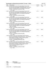 Einrichtungen zur Überwachung der Parkzeit - § 13 Abs. 1, 2 StVO Seite 107/ 0 TBNR Tatbestandstext FaP-Pkt Euro FV 113300 Sie parkten bei Zeichen 314/315 *), ohne die durch Zusatzzeichen ( B - 1) 5,00 vorgeschriebene Parkscheibe (Bild 291) von außen gut lesbar im oder am Fahrzeug angebracht zu haben. § 13 Abs. 1, 2, § 49 StVO; § 24 StVG; 63.1 BKat Tab.: 713010 113301 Sie parkten bei Zeichen 314/315 *), ohne die durch Zusatzzeichen ( B - 1) 10,00 vorgeschriebene Parkscheibe (Bild 291) von außen gut lesbar im oder am Fahrzeug angebracht zu haben - länger als 30 Minuten. § 13 Abs. 1, 2, § 49 StVO; § 24 StVG; 63.2 BKat Tab.: 713010 113302 Sie parkten bei Zeichen 314/315 *), ohne die durch Zusatzzeichen ( B - 1) 15,00 vorgeschriebene Parkscheibe (Bild 291) von außen gut lesbar im oder am Fahrzeug angebracht zu haben - länger als 1 Stunde. § 13 Abs. 1, 2, § 49 StVO; § 24 StVG; 63.3 BKat Tab.: 713010 113303 Sie parkten bei Zeichen 314/315 *), ohne die durch Zusatzzeichen ( B - 1) 20,00 vorgeschriebene Parkscheibe (Bild 291) von außen gut lesbar im oder am Fahrzeug angebracht zu haben - länger als 2 Stunden. § 13 Abs. 1, 2, § 49 StVO; § 24 StVG; 63.4 BKat Tab.: 713010 113304 Sie parkten bei Zeichen 314/315 *), ohne die durch Zusatzzeichen ( B - 1) 25,00 vorgeschriebene Parkscheibe (Bild 291) von außen gut lesbar im oder am Fahrzeug angebracht zu haben - länger als 3 Stunden. § 13 Abs. 1, 2, § 49 StVO; § 24 StVG; 63.5 BKat Tab.: 713010 113320 Sie parkten bei Zeichen 314/315 *), ohne die durch Zusatzzeichen ( B - 1) 5,00 vorgeschriebene Parkscheibe (Bild 291) richtig eingestellt zu haben. § 13 Abs. 1, 2, § 49 StVO; § 24 StVG; 63.1 BKat Tab.: 713011 113321 Sie parkten bei Zeichen 314/315 *), ohne die durch Zusatzzeichen ( B - 1) 10,00 vorgeschriebene Parkscheibe (Bild 291) richtig eingestellt zu haben - länger als 30 Minuten. § 13 Abs. 1, 2, § 49 StVO; § 24 StVG; 63.2 BKat Tab.: 713011 113322 Sie parkten bei Zeichen 314/315 *), ohne die durch Zusatzzeichen ( B - 1) 15,00 vorgeschriebene Parkscheibe (Bild 291) richtig eingestellt zu haben - länger als 1 Stunde. § 13 Abs. 1, 2, § 49 StVO; § 24 StVG; 63.3 BKat Tab.: 713011 113323 Sie parkten bei Zeichen 314/315 *), ohne die durch Zusatzzeichen ( B - 1) 20,00 vorgeschriebene Parkscheibe (Bild 291) richtig eingestellt zu haben - länger als 2 Stunden. § 13 Abs. 1, 2, § 49 StVO; § 24 StVG; 63.4 BKat Tab.: 713011 113324 Sie parkten bei Zeichen 314/315 *), ohne die durch Zusatzzeichen ( B - 1) 25,00 vorgeschriebene Parkscheibe (Bild 291) richtig eingestellt zu haben - länger als 3 Stunden. § 13 Abs. 1, 2, § 49 StVO; § 24 StVG; 63.5 BKat Tab.: 713011 TBNR Bemerkungen 113300 - 113324 *) Zutreffendes angeben
