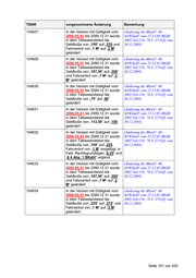 TBNR vorgenommene Änderung Bemerkung 112102; 112103; In der jeweils gültigen Version 112112; 112113; wurde die Untergrenze von 112122; 112123; „000001“ auf „000000“ geändert 112132; 112133; 112142; 112143; 112152; 112153; 112162; 112163; 112172; 112173; 112182; 112183; 112192; 112193; 112202; 112203; 112216; 112612; 112452; 112453; 112022; 112023; 112032; 112033; 112222; 112223; 112232; 112233; 112242; 112243; 112252; 112253; 112262; 112263; 112272; 112273; 112282; 112283; 112292; 112293; 112302; 112303; 112312; 112313; 112322; 112323; 112332; 112333; 112342; 112343; 112352; 112353; 112372; 112373; 112042; 112043; 112402; 112403; 112062; 112063; 112412; 112413; 112428; 112429; 112432; 112433 112456 - In der Version mit Gültigkeit vom (redaktionelle Überarbeitung) 2002.01.01 bis 2099.12.31 wurde in den Tatbestandstexten: hielten oder parkten“ durch: „<hielten/parkten>)“ ersetzt - Konkretisierungsfeld angepasst Seite 107 von 452