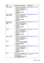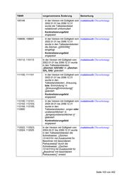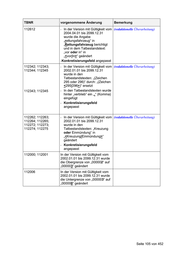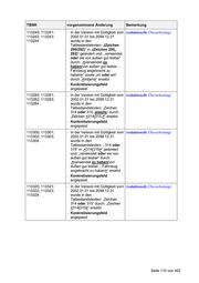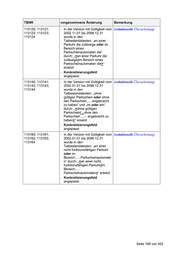 TBNR vorgenommene Änderung Bemerkung 112100; 112101; In der jeweils gültigen Version 112110; 112111; wurde die Obergrenze von 112120; 112121; „000000“ auf „000003“ geändert 112130; 112131; 112140; 112141; 112160; 112161; 112170; 112171; 112180; 112181; 112190; 112191; 112200; 112201; 112210; 112211; 112040; 112041; 112050; 112051; 112060; 112061; 112410; 112411; 112426; 112427 Seite 106 von 452