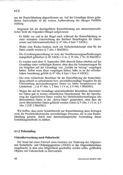 41.2 Vor dem Hintergrund vielfach erhobener und in anderen Ländern auch umgesetzter Forderungen nach der Einführung von Videoüberwachung im öffentlichen Raum ist zu begrüßen, dass sich die Regelung auf gefährdete Objekte beschränkt. Im Gegensatz zu Regelungen zur Videoüberwachung in den Polizeigesetzen anderer Länder werden allerdings an die Straftaten, deren drohende Begehung die Videoüberwachung rechtfertigen soll, keine erhöhten Anforderungen gestellt. Jede Straftat soll die Videoüberwachung rechtfertigen. Die allgemeinen Regelungen zur Videoüberwachung im neuen Daten- schutzrecht ($$ 6b BDSG, 31 b BInDSG) sehen unterschiedliche Schwellen für die bloße Beobachtung und die Speicherung bzw. Aufzeichnung der Daten vor. Im vorliegenden Entwurf werden Übertragung zur Beobachtung und zur Aufzeichnung gleichbehandelt. Im Gegensatz zu den allgemeinen Regelungen in Datenschutzgesetzen sah der Entwurf keine Information der Betroffenen vor, wenn durch Video- überwachung erhobene Daten einer bestimmten Person zugeordnet werden und gesetzliche Gründe dem nicht entgegenstehen. Der Entwurf lässt es zu, dass Videoaufzeichnungen über die zulässige Speicherungsdauer hinaus zur Aus- oder Fortbildung, zu statistischen Zwecken, im Interesse der betroffe- nen Person zur Behebung einer bestehenden Beweisnot oder zu wissen- schaftlichen Zwecken sowie zur historischen Archivierung weiter genutzt werden dürfen. Bei den in Frage stehenden Aufzeichnungen spielen alle diese Zwecksetzungen keine Rolle. Vielmehr muss es dabei bleiben, dass die Aufzeichnungen vernichtet werden, soweit sie nicht zur Verfolgung von Straftaten benötigt werden. Beide Mängel der Regelung wurden aufgrund unserer Stellungnahme beseitigt. Dateienrichtlinien Die Novellierung des Berliner Datenschutzgesetzes machte es erforder- lich, dass die Dateienrichtlinien (Ausführungsvorschriften zu $ 49 ASOG) angepasst werden mussten. Einvernehmen bestand mit der Senatsverwaltung für Inneres darin, dass nach dem ASOG für jede automatisierte Datei über personenbezogene Daten und solche nicht-automatisierten Dateien, aus denen personenbezogene Daten an andere Stellen übermittelt werden, jeweils eine Errichtungsanordnung zu erlassen ist. Das bedeutet, dass nicht nur die Polizeibehörde, sondern auch alle Ordnungsbehörden für diese Dateien mit personenbezogenen Daten Errichtungsanordnungen zu erlassen haben. Die alten Dateienrichtlinien waren zu eng, weil sie sich lediglich auf den Polizeipräsidenten in Berlin bezogen. Darüber hinaus ist unsere Anregung aufgegriffen worden, die Errich- tungsanordnungen über die behördlichen Datenschutzbeauftragten zu leiten. Diese Errichtungsanordnungen treten an die Stelle der Dateienübersicht. Jahresbericht BInBDI 2002 49