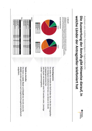 Auslesen von mobilen Datenträgern: Ergebnisbericht Die Auswertung der Anrufe gibt Hinweise darauf, in ud welche Länder der Antragsteller telefoniert hat 2. Herkunft In Dnutschlund petzrs il inarze Te cfenmumnem versan da [mögl velde] dergamak, humnam chre mögliche wrderssschärigkeit werder ia [nicht vehse] dammutelk Ba wird niche bei elanı arg Sr An tdaser mrsremislerı, masei Bear demnach n de egareg ee Darstellung mit sirbeugen worden: Sr gg reparte Annuidzuet ia deatelb rar dla Ein geeber Rchenart zu achen Ba werden nur de og 3 Länder dergeseck und ale Desomgurktz me rem Anteil unter I sog reger Anrufe (Telefon/Messenger] Auszuhand Tortendiagramme Sie stellen die Anteile der fünf Länder dar, in die der Antragsteller am häufigsten telefoniert hat bzw. aus denen er Anrufe entgegengenommen hat. Alle Länder mit Anteilen unter 5% werden unter „Sonstige Länder“ zusammengefasst. Tabelle zu Anrufen Die Daten zu Land, Dauer und Anzahl der Anrufe sowie die Anteile werden getrennt nach eingehend/ausgehend tabellarisch aufgeführt.