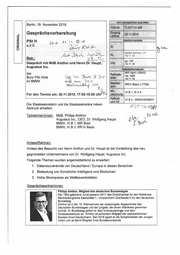 Чoтil,t~sbe~etch`;a~Чen Berlin, 19. November 2018 1 СВY "R'~ILB Gesprächsvorbereitung EInQSnQ 20. 0ј ORlGlNAL k.ettttrig " _ Pst H {J-') А6iélфпungslëјstе a.d.D. ~__._..__._._._.....,. .._....._ . Slвfan SChnOfr, ц1 ~{,{. .' ,t`•" ,¡;~~ ~~,~г~ 19.11 18 Betr. g L`~. .~ . 1, / 1 go. VIB Gespräch mit 1dB Amthor und Herrn г. Haupt, UAL 19.11.18 Augustus Inc. Re~eràisfпfor_matíonen ' Ort: MR Hart' (-6540) Re€erats- ` На, V1вз Büro PSt Hirte 5 )~G 'ёïter 19.11,18 im BIWi r~1 "&~ с 70(1 RR'in Basic (-7708) г, V1B1,111A4 Fur den Termin am: 20.11.2018, 17:00-18:00 0hI 1 zeiohnurig' Referat'. V1 B 3 - 60503/004#001 ut;á A2 Die Staatssekretärin und die Staatssekretäre haben Abdruck erhalten. Teilnehmer/innen: MdB, Philipp Amthor 2s /b'-- Augustus Inc., CEO, Dr. Wolfgang Haupt BMWi, VI B 1, MR Breit BMWi, V1 B 3, RR'in Basic Anlass/Rahmen; Anlass des Besuchs von Herrn Amthor und Dr. Haupt ist die Vorstellung des neu gegrundeten Unternehmens von Dr. Wolfgang Haupt, Augustus Inc. Folgende Themen wurden angemeldet/sind zu erwarten: 1. Datensouveränität von Deutschland / Europa in diesen Bereichen z. Bedeutung von Künstlicher Intelligenz und Blockchain 3. Hohe Strompreise als Wettbewerbsfaktor Gesprächspartner/innen: Philipp Amthor, Mitglied des deutschen Bundestages Der 1992 geborene Jurist gewann 2017 das Direktmandat für. den Wahlkreis Mecklenburgische Seenplatte I — Vorpommern-Greifswald i fur den deutschen Bundestag. Amthor ist in der 19. Wahlperiode der zweitjüngste Abgeordnete des Deutschen Bundestages und der jüngste, der einen Wahlkreis gewinnen konnte. Im Bundestag gehört er dem InпепаusschL's und dem Europaausschuss an. Amthor ist außerdem Mitgн d der überparteilichen Europa-Union Deutschland. Seit 2018 agiert er al's Schatzmeister der Jungen Union und ist damit Mitglied ihres Bundesvorstands.
