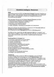 5 KüЊstti+cMе Itttel1genz 1 Btоckchaiп BMWi Laut Koalitionsvertrag wird DEU eine Blockchain-Strategie entwickeln (Federführung: BMWi und 81F). Nach derzeitiger Planung wird die Strategie Mitte 2019 veröffentlicht (BM-Vodage im Gescháftsgaпgj. Im Rahmen der Strategieerarbeitung ist ein Konsultationsprozess geplant. Nach derzeitiger Planung wird die Strategie folgende Elemente beinhalten: 1.Rechtsrahmen für Blockchain-Technologien anpassen, 2. Privatwiriscltaftliche Pilotprojekte unterstützen, 3. Blockchain in der Verwaltung erproben, 4. Anwendungsnahe Forschung stärken, 5. Ausbau Ökosystem, Vernetzung von Entwicklern und Unternehmen. BReg hat im Rahmen der Kabinettsklausur in Potsdam am 15. November 2018 ihre Strategie Künstliche Intelligenz beschlossen. Die Vorstellung ist auf dem Digitalgipfel am 3./4.12. in Nürnberg geplant. Die BReg hat dazu aпgeküпdigt, bis 2025 insgesamt 3 Mrd. € zu investieren, auch unter Einsatz von Mitteln zur F&E zur Erreichung des 3, 5% -Ziels. Für 2019 sind dazu in einem ersten Schritt 50 Mio. € plus 450 Mio. ~ Verpflichtungsermächtigungen eingeplant. Handlungsfelder der Strategie sind: 1)Forschung in Deutschland und Europa stärken, 2) lпnovationswettbewerbe und -cluster zu Kl, 3) Transfer iпΡ die Wirtschaft 4) Gпïndиngsdyпamik stärken, 5) Strиkturwaпdel in Arbeitswelt/-markt gestalten, 6) Ausbildung stärken / Fachkräfte gewinnen. 7) Kl in der Verwaltung nutzen, 8) Datenverfügbarkeit und -nutzbarkeit steigern, 9) Ordnungsrahmen anpassen / Rechtssicherheit schaffen. 10)Standards setzen, 11)Nationale und inteтationale Vernetzung, 12) Dialoge in der Gesellschaft fúhren. Augustus Inc In einem Working Paper schreibt der CEO von Augustus. dass die Strategie Künstliche Intelligenz der Bundesregierung mit einer Begleitstrategie, einer Koordinierung im BKAmt und einer Reihe von Einzelmаßnahmеп einhergehen muss. Es sei wichtig, einen Bewusstseinswandel in der Bevölkerung zu erreichen, um die Dimensionen der Veränderungen durch Blockchain, digitaler Identität und technologischem Wandel verständlich zu machen. Hierfür müssten auch Computerkenntnisse früher und umfassender vermittelt werden. Blockchain und Künstlíche Intelligenz würden zudem staatliches Handeln in den Bereichen Ethik, in der Schaffung eines Rechtsrahmens, der auf die technologischen Herausforderungen abgestimmt ist, und im Bereich sicherheitsrelevante Aspekte erfordern.