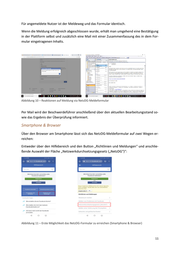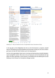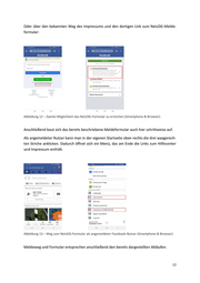 Abbildung 15 – Weg zum NetzDG-Formular als angemeldeter Nutzer (Smartphone & App) In der App gibt es keine Möglichkeit die Links von den Kommentaren zu kopieren, obwohl diese für die Meldung per NetzDG-Meldeformular besonders wichtig sind. Die Links zu Beiträ- gen lassen sich über die Teilen-Funktion auch in der App kopieren. Auch als nicht angemeldeter Nutzer kann in der App eine Beschwerde per NetzDG-Meldefor- mular durchgeführt werden. Über einen Link zum Impressum auf der Anmeldeseite der App öffnet sich dieses (allerdings in einem Browser). Anschließend kann die Meldung dort wie die Meldung in einem Browser am Smartphone vollzogen werden. 14