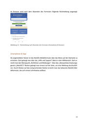 Im Browser wird nach dem Absenden des Formulars folgende Rückmeldung angezeigt: Abbildung 14 – Rückmeldung nach Absenden des Formulars (Smartphone & Browser) Smartphone & App Als angemeldeter Nutzer ist das NetzDG-Meldeformular über das Menü auf der Startseite zu erreichen. Dort gelangt man über das „Hilfe und Support“-Menü in den Hilfebereich. Dort er- reicht man den Menüpunkt „Richtlinien und Meldungen“. Über den „Netzwerkdurchsetzungs- gesetz („NetzDG“)“-Button gelangt man erneut auf die Seite, um eine Meldung durchzufüh- ren. Durch Klicken auf den entsprechenden Button erreicht man das bekannte NetzDG-Mel- deformular, das sich erneut schrittweise aufbaut. 13