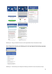 Für angemeldete Nutzer ist der Meldeweg und das Formular identisch. Wenn die Meldung erfolgreich abgeschlossen wurde, erhält man umgehend eine Bestätigung in der Plattform selbst und zusätzlich eine Mail mit einer Zusammenfassung des in dem For- mular eingetragenen Inhalts. Abbildung 10 – Reaktionen auf Meldung via NetzDG-Meldeformular Per Mail wird der Beschwerdeführer anschließend über den aktuellen Bearbeitungsstand so- wie das Ergebnis der Überprüfung informiert. Smartphone & Browser Über den Browser am Smartphone lässt sich das NetzDG-Meldeformular auf zwei Wegen er- reichen: Entweder über den Hilfebereich und den Button „Richtlinien und Meldungen“ und anschlie- ßende Auswahl der Fläche „Netzwerkdurchsetzungsgesetz („NetzDG“)“: Abbildung 11 – Erste Möglichkeit das NetzDG-Formular zu erreichen (Smartphone & Browser) 11