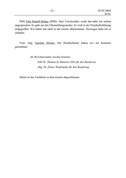 - 22 - 05.05.2004 lu-bo PStS Fritz Rudolf Körper (BMI): Herr Vorsitzender, exakt das habe ich soeben angesprochen. Es geht um den Übermittlungsmodus. Er wird in der Protokollerklärung aufgegriffen. Wir haben ihn nicht in das Gesetz übernommen. Deswegen habe ich es erläutert. Vors. Abg. Joachim Hörster: Die Protokollnotiz haben wir zur Kenntnis genommen. Als Berichterstatter werden benannt: StM Dr. Thomas de Maizière (SN) für den Bundesrat Abg. Dr. Dieter Wiefelspütz für den Bundestag Damit ist das Verfahren zu dem Gesetz abgeschlossen.