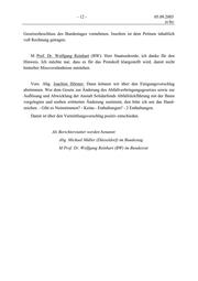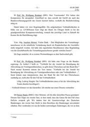 - 11 - 05.09.2005 zi-bo M Prof. Dr. Wolfgang Reinhart (BW): Herr Vorsitzender! Wir halten den Kompromiss für akzeptabel. Zutreffend ist, dass sowohl der EuGH als auch das Bundesverfassungsgericht das Gesetz kassiert haben, weshalb die Rückabwicklung nötig ist. Damit haben wir zwei Regelungsfälle: Die aufgelaufenen Verbindlichkeiten in Höhe von ca. 4,9 Millionen Euro trägt der Bund. Im Übrigen bleibt es bei der grundgesetzlichen Kompetenzverteilung, wonach das jeweilige Land in Zukunft die Kosten für die Rückführung trägt. Vors. Abg. Joachim Hörster: Vielen Dank. - Den Mitgliedern des Vermittlungs- ausschusses ist die inhaltliche Veränderung durch ein Rundschreiben der Geschäfts- stelle mitgeteilt worden. Ich habe den eigentlichen Beschlusstext ohne Begründung von der Geschäftsstelle des Vermittlungsausschusses gerade verteilen lassen*). Ich frage zunächst, ob es weitere Wortmeldungen zu dem Sachverhalt gibt. M Prof. Dr. Wolfgang Reinhart (BW): Ich habe eine Frage an die Bundes- regierung. Zu Artikel 2 heißt es: "Verbleibt bei der Anstalt bei Beendigung der Abwicklung ein Vermögensüberschuss, so geht dieser Überschuss auf den Bund über." Nach meiner Kenntnis müsste der Text lauten: "Verbleibt bei der Anstalt bei Beendigung der Abwicklung ein Vermögensüberschuss oder eine Verbindlichkeit ...". Sonst könnte man interpretieren, dass der Bund für den Fall des Überschusses zuständig sei, nicht aber für den Fall der Verbindlichkeit. (Abg. Ludwig Stiegler: Die Verbindlichkeiten muss er bei der Abwicklung des Fonds ohnehin bewältigen!) - Vielleicht können wir das klarstellen. Ich möchte nur einen Dissens vermeiden. StS Rainer Baake (BMU): Herr Minister, ich bin über denselben Passus gestolpert. Diesem Satz folgte ein zweiter Satz, in dem stand, dass das Ganze für den Fall eines Defizits reziprok gilt. Wir ändern hier die Gesetzesvorlage des Deutschen Bundestages; der zweite Satz bleibt in dem Beschluss des Bundestages unverändert erhalten. Hier verabreden wir nur die beiden notwendigen Änderungen, die wir an dem *) Anlage