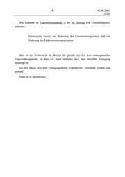- 14 - 05.09.2005 zi-bo Wir kommen zu Tagesordnungspunkt 6 der 56. Sitzung des Vermittlungsaus- schusses: Zwanzigstes Gesetz zur Änderung des Umsatzsteuergesetzes und zur Änderung des Einkommensteuergesetzes Hier ist der Sachverhalt im Prinzip der gleiche wie bei dem vorhergehenden Tagesordnungspunkt, so dass ich Ihnen mitteilen darf, dass ebenfalls Vertagung beantragt ist. Ich darf fragen, wer dem Vertagungsantrag widerspricht. - Niemand. Enthält sich jemand? Dann ist so beschlossen.
