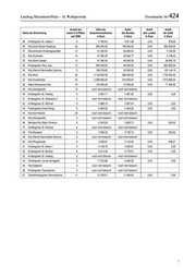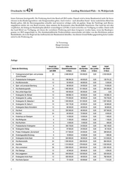 Drucksache 16/ 424 Landtag Rheinland-Pfalz – 16. Wahlperiode festen Zeitraum bereitgestellt. Die Förderung durch den Bund soll 2013 enden. Danach wird es keine Bundesmittel mehr für Inves- titionen in den Kindertagesstätten- oder Krippenausbau geben. Auch wird es – nach aktuellem Stand – keine zusätzlichen Mittel des Bundes geben, falls der Betreuungsausbau schneller und intensiver erfolgen sollte als geplant. Steigt die Nachfrage nach Betreu- ungsplätzen stärker als vom Bund erwartet, dann müssten die Kommunen ohne Bundeshilfe finanzieren. Das Land hat sich aber verpflichtet, die bislang im Haushaltsplan jährlich veranschlagten 2,25 Mio. € auch weiterhin zur Verfügung zu stellen. Damit stellt das Land Mittel zur Verfügung, mit denen die vereinbarte Förderung auch dann fortgesetzt werden kann, wenn das Bundespro- gramm vor 2013 ausgeschöpft ist. Die rheinland-pfälzische Förderrichtlinie unterscheidet sich daher von den Richtlinien anderer Bundesländer, die in der Regel auf das Aufbrauchen der Bundesmittel abstellen. Aus diesem Grund fließen gegenwärtig keine Landes- mittel in die Förderung ein. In Vertretung: Margit Gottstein Staatssekretärin Anlage Anzahl der Höhe der Anteil Anteil Anteil Name der Einrichtung neuen U-3-Plätze Gesamtinvestitionen des Bundes des Landes der Stadt seit 2008 in Euro in Euro in Euro in Euro 1 Fördergemeinschaft Spiel- und Lernstube 20 2 488 000,00 135 000,00 0,00 2 353 000,00 „Emmi-Knauber“ 2 Protestantischer Kindergarten 12 198 384,35 48 000,00 0,00 128 761,22 3 Kita Blücherstraße 12 52 000,00 46 800,00 0,00 5 200,00 4 Spiel- und Lernstube Ebernburg 6 98 000,00 24 000,00 0,00 74 000,00 5 Kita Madenburgstraße 24 1 465 300,00 151 000,00 0,00 254 390,00 6 Kita LuKids Krippe Süd 10 180 000,00 95 000,00 0,00 0,00 7 Kindergarten St. Michael 12 188 866,10 48 000,00 0,00 140 866,10 8 Kindergarten St. Ludwig 12 775 000,00 48 000,00 0,00 703 750,00 9 Kindergarten St. Sebastian I 34 1 300 000,00 191 000,00 0,00 1 007 400,00 10 Kindergarten St. Gallus II 10 102 176,38 40 000,00 0,00 60 865,60 11 Kindergarten Maria Himmelfahrt 12 86 500,00 48 000,00 0,00 36 600,00 12 Kita Nord 12 555 560,00 48 000,00 0,00 507 560,00 13 Kita Süd 24 80 000,00 72 000,00 0,00 8 000,00 14 Kinderhaus am Ebertpark 6 14 000,00 12 600,00 0,00 1 400,00 15 Kita Wolfsgrube 6 11 000,00 9 900,00 0,00 1 100,00 16 Kita Ruchheim 6 6 000,00 5 400,00 0,00 600,00 17 Protestantischer Kindergarten 6 300 735,65 24 000,00 0,00 182 149,02 18 Kindergarten Kibitop 6 97 650,00 24 000,00 0,00 40 150,00 19 Protest. Kindergarten „Sonnenland“ 6 417 500,00 24 000,00 0,00 389 925,00 20 Kindertagesstätte Brückweg 6 18 809,64 16 928,68 0,00 1 880,96 21 Kindergarten Arche Noah 12 624 900,00 48 000,00 0,00 513 000,00 22 Kita Marienstraße 24 1 090 000,00 206 000,00 0,00 884 000,00 23 Kita Mitte 42 1 310 000,00 278 000,00 0,00 1 032 000,00 24 Kita Lummerland 36 1 590 000,00 309 000,00 0,00 1 281 000,00 25 Kita Tabaluga 12 42 940,00 38 646,00 0,00 4 294,00 26 Kita Langgewann 30 640 000,00 120 000,00 0,00 520 000,00 27 Kindergarten Arche Noah 12 830 000,00 48 000,00 0,00 782 000,00 28 Kita Kecke Spatzen 10 73 122,00 65 809,80 0,00 7 312,20 2