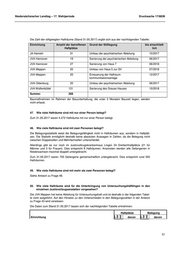 Niedersächsischer Landtag – 17. Wahlperiode Drucksache 17/8839 Die Zahl der stillgelegten Hafträume (Stand 31.05.2017) ergibt sich aus der nachfolgenden Tabelle: Einrichtung Anzahl der betroffenen Grund der Stilllegung bis einschließ- Haftplätze lich JA Hameln 31 Umbau der psychiatrischen Abteilung 10/2017 JVA Hannover 19 Sanierung der psychiatrischen Abteilung 06/2017 JVA Hannover 27 Sanierung von Haus 7 06/2018 JVA Meppen 20 Umbau von Haus 5 zur SV 07/2018 JVA Meppen 20 Erneuerung der Haftraum- 12/2017 kommunikationsanlage JVA Oldenburg 20 Umbau der psychiatrischen Abteilung 06/2017 JVA Wolfenbüttel 131 Sanierung des Graues Hauses 10/2018 Summe: 268 Baumaßnahmen im Rahmen der Bauunterhaltung, die unter 3 Monaten Bauzeit liegen, werden nicht erfasst. 47. Wie viele Hafträume sind mit nur einer Person belegt? Zum 31.05.2017 waren 4.272 Hafträume mit nur einer Person belegt. 48. Wie viele Hafträume sind mit zwei Personen belegt? Die Belegungsstatistik weist die Belegungsfähigkeit nicht in Hafträumen aus, sondern in Haftplät- zen. Die Statistik ermöglicht deshalb keine absoluten Aussagen in Zahlen, da die Belegung nicht zwischen Doppelzellen und Mehrfachzellen unterscheidet. Allerdings gibt es nur noch im Justizvollzugskrankenhaus Lingen 24 Dreifachhaftplätze (21 für Männer und 3 für Frauen). Dies entspricht 8 Hafträumen. Ansonsten werden alle Gefangenen in Niedersachsen maximal doppelt untergebracht. Zum 31.05.2017 waren 705 Gefangene gemeinschaftlich untergebracht. Dies entspricht rund 350 Hafträumen. 49. Wie viele Hafträume sind mit mehr als zwei Personen belegt? Siehe Antwort zu Frage 48. 50. Wie viele Hafträume sind für die Unterbringung von Untersuchungshäftlingen in den einzelnen Justizvollzugsanstalten vorgesehen? Die JVA Meppen hat keine Abteilung für Untersuchungshaft und ist deshalb in der folgenden Tabel- le nicht aufgeführt. Auf den Hinweis zu den Unterschieden in den Belegungszahlen in der Antwort zu Frage 43 wird verwiesen. Die Daten zum Stand 31.05.2017 lassen sich der nachfolgenden Tabelle entnehmen: Haftplätze Belegung ge ge Einrichtung sa mt davon sa mt davon 51