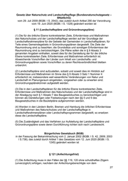 Gesetz über Naturschutz und Landschaftspflege (Bundesnaturschutzgesetz – BNatSchG) vom 29. Juli 2009 (BGBl. I S. 2542), das zuletzt durch Artikel 290 der Verordnung vom 19. Juni 2020 (BGBl. I S. 1328) geändert worden ist § 11 (Landschaftspläne und Grünordnungspläne) (1) Die für die örtliche Ebene konkretisierten Ziele, Erfordernisse und Maßnahmen des Naturschutzes und der Landschaftspflege werden auf der Grundlage der Landschaftsrahmenpläne für die Gebiete der Gemeinden in Landschaftsplänen, für Teile eines Gemeindegebiets in Grünordnungsplänen dargestellt. Die Ziele der Raumordnung sind zu beachten; die Grundsätze und sonstigen Erfordernisse der Raumordnung sind zu berücksichtigen. Die Pläne sollen die in § 9 Absatz 3 genannten Angaben enthalten, soweit dies für die Darstellung der für die örtliche Ebene konkretisierten Ziele, Erfordernisse und Maßnahmen erforderlich ist. Abweichende Vorschriften der Länder zum Inhalt von Landschafts- und Grünordnungsplänen sowie Vorschriften zu deren Rechtsverbindlichkeit bleiben unberührt. (2) Landschaftspläne sind aufzustellen, sobald und soweit dies im Hinblick auf Erfordernisse und Maßnahmen im Sinne des § 9 Absatz 3 Satz 1 Nummer 4 erforderlich ist, insbesondere weil wesentliche Veränderungen von Natur und Landschaft im Planungsraum eingetreten, vorgesehen oder zu erwarten sind. Grünordnungsplänekönnen aufgestellt werden. (3) Die in den Landschaftsplänen für die örtliche Ebene konkretisierten Ziele, Erfordernisse und Maßnahmen des Naturschutzes und der Landschaftspflege sind in der Abwägung nach § 1 Absatz 7 des Baugesetzbuches zu berücksichtigen und können als Darstellungen oder Festsetzungen nach den §§ 5 und 9 des Baugesetzbuches in die Bauleitpläne aufgenommen werden. (4) Werden in den Ländern Berlin, Bremen und Hamburg die örtlichen Erfordernisse und Maßnahmen des Naturschutzes und der Landschaftspflege in Landschaftsrahmenplänen oder Landschaftsprogrammen dargestellt, so ersetzen diese die Landschaftspläne. (5) Die Zuständigkeit und das Verfahren zur Aufstellung der Landschaftspläne und Grünordnungspläne sowie deren Durchführung richten sich nach Landesrecht. Bürgerliches Gesetzbuch (BGB) in der Fassung der Bekanntmachung vom 2. Januar 2002 (BGBl. I S. 42, 2909; 2003 I S.738), das zuletzt durch Artikel 1 des Gesetzes vom 12. Juni 2020 (BGBl. I S. 1245) geändert worden ist § 121 (Anfechtungsfrist) (1) Die Anfechtung muss in den Fällen der §§ 119, 120 ohne schuldhaftes Zögern (unverzüglich) erfolgen, nachdem der Anfechtungsberechtigte von dem 27