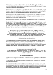 Rechtsanwälte und andere Personen bekannt geworden sind, ohne Genehmigung nicht aussagen. (3) Die Genehmigung zur Aussage erteilt der Vorstand der Rechtsanwaltskammer nach pflichtmäßigem Ermessen. Die Genehmigung soll nur versagt werden, wenn Rücksichten auf die Stellung oder die Aufgaben der Rechtsanwaltskammer oder berechtigte Belange der Personen, über welche die Tatsachen bekannt geworden sind, es unabweisbar erfordern. § 28 Abs. 2 des Gesetzes über das Bundesverfassungsgericht bleibt unberührt. Gesetz über die Statistik für Bundeszwecke (Bundesstatistikgesetz – BStatG) in der Fassung der Bekanntmachung vom 20. Oktober 2016 (BGBl. I S. 2394), das zuletzt durch Artikel 177 der Verordnung vom 19. Juni 2020 (BGBl. I S. 1328) geändert worden ist § 1 (Statistik für Bundeszwecke) Die Statistik für Bundeszwecke (Bundesstatistik) hat im föderativ gegliederten Gesamtsystem der amtlichen Statistik die Aufgabe, laufend Daten über Massenerscheinungen zu erheben, zu sammeln, aufzubereiten, darzustellen und zu analysieren. Für sie gelten die Grundsätze der Neutralität, Objektivität und fachlichen Unabhängigkeit. Sie gewinnt die Daten unter Verwendung wissenschaftlicher Erkenntnisse und unter Einsatz der jeweils sachgerechten Methoden und Informationstechniken. Durch die Ergebnisse der Bundesstatistikwerden gesellschaftliche, wirtschaftliche und ökologische Zusammenhänge für Bund, Länder einschließlich Gemeinden und Gemeindeverbände, Gesellschaft, Wirtschaft, Wissenschaft und Forschung aufgeschlüsselt. Die Bundesstatistik ist Voraussetzung für eine am Sozialstaatsprinzip ausgerichtete Politik. Die für die Bundesstatistikerhobenen Einzelangaben dienen ausschließlich den durch dieses Gesetz oder eine andere eine Bundesstatistikanordnende Rechtsvorschrift festgelegten Zwecken. § 5 (Anordnung von Bundesstatistiken) (1) Die Bundesstatistiken werden, soweit in diesem Gesetz oder in einer sonstigen Rechtsvorschrift nichts anderes bestimmt ist, durch Gesetz angeordnet. Die Rechtsvorschrift soll auch das Informationsbedürfnis der Länder einschließlich der Gemeinden und Gemeindeverbände berücksichtigen. (2) Die Bundesregierung wird ermächtigt, durch Rechtsverordnung mit Zustimmung des Bundesrates Bundesstatistiken mit einer Geltungsdauer bis zu drei Jahren anzuordnen sowie Bundesstatistiken hinsichtlich der Merkmale und des Kreises der zu Befragenden für eine Geltungsdauer bis zu drei Jahren zu ergänzen, wenn folgende Voraussetzungen gegeben sind: 1. Die Ergebnisse der Bundesstatistiken müssen zur Erfüllung bestimmter, im Zeitpunkt der Erhebung schonfestliegender Bundeszwecke erforderlich sein, 2. die Bundesstatistiken dürfen nur einen beschränkten Personenkreis erfassen, 29