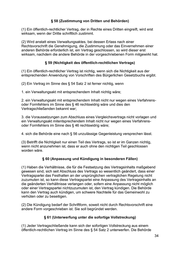 § 58 (Zustimmung von Dritten und Behörden) (1) Ein öffentlich-rechtlicher Vertrag, der in Rechte eines Dritten eingreift, wird erst wirksam, wenn der Dritte schriftlich zustimmt. (2) Wird anstatt eines Verwaltungsaktes, bei dessen Erlass nach einer Rechtsvorschrift die Genehmigung, die Zustimmung oder das Einvernehmen einer anderen Behörde erforderlich ist, ein Vertrag geschlossen, so wird dieser erst wirksam, nachdem die andere Behörde in der vorgeschriebenen Form mitgewirkt hat. § 59 (Nichtigkeit des öffentlich-rechtlichen Vertrags) (1) Ein öffentlich-rechtlicher Vertrag ist nichtig, wenn sich die Nichtigkeit aus der entsprechenden Anwendung von Vorschriften des Bürgerlichen Gesetzbuchs ergibt. (2) Ein Vertrag im Sinne des § 54 Satz 2 ist ferner nichtig, wenn 1. ein Verwaltungsakt mit entsprechendem Inhalt nichtig wäre; 2. ein Verwaltungsakt mit entsprechendem Inhalt nicht nur wegen eines Verfahrens- oder Formfehlers im Sinne des § 46 rechtswidrig wäre und dies den Vertragschließenden bekannt war; 3. die Voraussetzungen zum Abschluss eines Vergleichsvertrags nicht vorlagen und ein Verwaltungsakt mitentsprechendem Inhalt nicht nur wegen eines Verfahrens- oder Formfehlers im Sinne des § 46 rechtswidrig wäre; 4. sich die Behörde eine nach § 56 unzulässige Gegenleistung versprechen lässt. (3) Betrifft die Nichtigkeit nur einen Teil des Vertrags, so ist er im Ganzen nichtig, wenn nicht anzunehmen ist, dass er auch ohne den nichtigen Teil geschlossen worden wäre. § 60 (Anpassung und Kündigung in besonderen Fällen) (1) Haben die Verhältnisse, die für die Festsetzung des Vertragsinhalts maßgebend gewesen sind, sich seit Abschluss des Vertrags so wesentlich geändert, dass einer Vertragspartei das Festhalten an der ursprünglichen vertraglichen Regelung nicht zuzumuten ist, so kann diese Vertragspartei eine Anpassung des Vertragsinhalts an die geänderten Verhältnisse verlangen oder, sofern eine Anpassung nicht möglich oder einer Vertragspartei nichtzuzumuten ist, den Vertrag kündigen. Die Behörde kann den Vertrag auch kündigen, um schwere Nachteile für das Gemeinwohl zu verhüten oder zu beseitigen. (2) Die Kündigung bedarf der Schriftform, soweit nicht durch Rechtsvorschrift eine andere Form vorgeschrieben ist. Sie soll begründet werden. § 61 (Unterwerfung unter die sofortige Vollstreckung) (1) Jeder Vertragschließende kann sich der sofortigen Vollstreckung aus einem öffentlich-rechtlichen Vertrag im Sinne des § 54 Satz 2 unterwerfen. Die Behörde 34