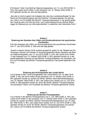 Artikel 8 Änderung Berliner Betriebe-Gesetz In §°3 Absatz 5 Nummer 3 Satz 4 des Berliner Betriebe-Gesetzes vom 14. Juli 2006 (GVBl. S. 827), das zuletzt durch Artikel 48 des Gesetzes vom 12. Oktober 2020 (GVBl. S. 807) geändert worden ist, werden die Wörter „Berliner Informationsfrei- heitsgesetz“ durch die Wörter „Berliner Transparenzgesetz vom [einsetzen: Datum und Fundstelle des Berliner Transparenzgesetzes]“ ersetzt. Artikel 9 Änderung des Justizvollzugsdatenschutzgesetzes Berlin Das Justizvollzugsdatenschutzgesetz Berlin vom 21. Juni 2011 (GVBl. S. 287) wird wie folgt geändert: 1. In § 3 Satz 2 werden die Wörter „Berliner Informationsfreiheitsgesetz vom 15. Ok- tober 1999 (GVBl. S. 561), das zuletzt durch Gesetz vom 8. Juli 2010 (GVBl. S. 358) geändert worden ist,“ durch die Wörter „Berliner Transparenzgesetz vom [einsetzen: Datum und Fundstelle des Berliner Transparenzgesetzes]“ ersetzt. 2. In § 33 Satz 2 werden die Wörter „Berliner Informationsfreiheitsgesetz“ durch die Wörter „Berliner Transparenzgesetz“ ersetzt. Artikel 10 Änderung des Berliner Stiftungsgesetzes Dem § 11 des Berliner Stiftungsgesetzes in der Fassung der Bekanntmachung vom 22. Juli 2003 (GVBl. S. 293) wird folgender Absatz 3 angefügt: „(3) Die behördlichen Unterlagen über die Anerkennung der Rechtsfähigkeit und die Beaufsichtigung der rechtsfähigen Stiftungen des bürgerlichen Rechts unterliegen nicht dem Informationsrecht nach dem Berliner Transparenzgesetz vom [einsetzen: Datum und Fundstelle des Berliner Transparenzgesetzes].“ Artikel 11 Änderung des Berliner Mobilitätsgesetzes In § 37 Absatz 4 Satz 4 des Berliner Mobilitätsgesetzes vom 5. Juli 2018 (GVBl. S. 464) werden die Wörter „Berliner Informationsfreiheitsgesetzes“ durch die Wörter „Berliner Transparenzgesetzes vom [einsetzen: Datum und Fundstelle des Berliner Transparenzgesetzes]“ ersetzt. Artikel 12 Änderung des Berliner Tierschutzverbandsklagegesetzes 27