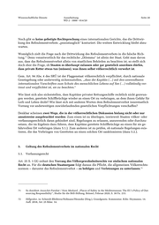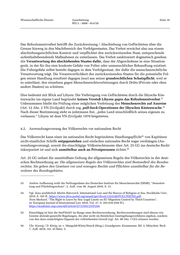 Wissenschaftliche Dienste Ausarbeitung Seite 17 WD 2 - 3000 - 014/20 Die Eigenschaft als „Bewohner des Bundesgebietes“ hängt nicht vom Wohnsitz ab, sondern meint 57 alle, die der Geltung der deutschen Rechtsordnung unterworfen sind. Mit den allgemeinen 58 Regeln des Völkerrechts ist nach ständiger Rechtsprechung des BVerfG und einhelliger Auffas- sung in der Literatur das universelle Völkergewohnheitsrecht gemeint. Dazu gehört unstrittig 59 auch das sog. Refoulementverbot. Dabei sind staats- und drittgerichtete Völkerrechtsnormen zu 60 unterscheiden. Zu den individual-gerichteten Regeln des Völkerrechts gehören insb. die ge- wohnheitsrechtlich geltenden Menschenrechte (wie das Sklaverei- und Folterverbot) sowie die individual-gerichteten Verbotsnormen des Völkerstrafrechts (Verbrechen gegen die Menschlich- 61 keit, Kriegsverbrechen). Auffällig ist dabei, dass diese Verbotsnormen ausnahmslos eine „Entsprechung“ im nationalen Strafgesetzbuch gefunden haben. 4.3. Bindung nicht-staatlicher Akteure an das Refoulementverbot Weitgehend ungeklärt ist die sog. Drittwirkung (Individualgerichtetheit) des Refoulementverbots – also die Frage, ob auch nicht-staatliche Akteure (z.B. Kapitäne von Handelsschiffen) verpflich- tet werden. In rechtlich unverbindlicher Form ist das Refoulementverbot faktisch auf private 62 Akteure ausgeweitet worden. So wird in den IMO-Richtlinien vom 20. Mai 2004 „empfohlen“, dass Kapitäne gerettete Asylsuchende nicht dort an Land setzen sollen, wo ihnen Verfolgung und 63 andere Gefahren drohen. 57 Hillgruber, in: Schmidt-Bleibtreu/Hofmann/Henneke (Hrsg.), Grundgesetz. Kommentar, Köln: Heymanns, 14. Aufl. 2018, Art. 25 Rdnr. 18 m.w.N. 58 Vgl. z.B. BVerfGE 15, 25 (34); BVerfGE 16, 27 (33); BVerfGE 23, 288 (317); BVerfGE 31, 145 (177). 59 Dies gilt auch im seerechtlichen Kontext, vgl. Yoshifumi Tanaka, The International Law of the Sea, Cambridge, 3. Aufl. 2019, S. 215. 60 Hillgruber, in: Schmidt-Bleibtreu/Hofmann/Henneke (Hrsg.), Grundgesetz. Kommentar, Köln: Heymanns, 14. Aufl. 2018, Art. 25 Rdnr. 4 ff. Heintschel v. Heinegg, in: Epping/Hillgruber (Hrsg.), Grundgesetz, München: Beck, 3. Aufl. 2020, Art. 25 Rdnr. 19 sowie 33 f. 61 Chr. Koenig / D. König, in: v. Mangoldt/Klein/Starck (Hrsg.), Grundgesetz. Kommentar, Bd. 2, München: Beck 7. Aufl. 2018, Art. 25 Rdnr. 68. Heintschel v. Heinegg, in: Epping/Hillgruber (Hrsg.), Grundgesetz, München: Beck, 3. Aufl. 2020, Art. 25 Rdnr. 33. 62 Sicco Rah, „Asylsuchende und Migranten auf See“, Heidelberg: Springer 2009, S. 180, https://link.springer.com/book/10.1007%2F978-3-540-92931-4. 63 Vgl. Guidelines on the Treatment of Persons rescued at Sea, Annex 34, Res. MSC 167/78, Ziff. 6.17, http://www.imo.org/en/OurWork/Facilitation/personsrescued/Documents/MSC.167(78).pdf: “The need to avoid disembarkation in territories where the lives and freedoms of those alleging a well-founded fear of perse- cution would be threatened is a consideration in the case of asylum-seekers and refugees recovered at sea.“ Vgl. auch Ziff. 5.6: „[Ship masters should] seek to ensure that survivors are not disembarked to a place where their safety would be further jeopardized.”