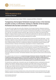 PRESS RELEASE No 82/24 Luxembourg, 8 May 2024 Judgment of the General Court in Case T-375/22 | Izuzquiza and Others v Parliament Transparency: the European Parliament must give access, in the interests of public scrutiny, to information relating to a Member of the European Parliament who has been convicted in a court of law On 2 July 2019, Ioannis Lagos took up the office of Member of the European Parliament, following his election in Greece. On 7 October 2020, the Court of Appeal of Athens (Greece) sentenced Mr Lagos to 13 years and 8 months’ imprisonment and to the payment of a fine, in particular for membership and leadership of a criminal organisation. On 27 April 2021, the European Parliament waived Mr Lagos’ immunity at the request of the Greek authorities. Despite his criminal conviction, the waiver of his immunity and his imprisonment, Mr Lagos did not resign from his mandate as a Member of the European Parliament. His conviction did not give rise to any communication from the Greek authorities to the Parliament concerning the withdrawal of his mandate. On 7 December 2021, three citizens – Ms Luisa Izuzquiza, Mr Arne Semsrott and Mr Stefan Wehrmeyer – sent the Parliament a request for access to documents related to the allowances and expenses granted to Mr Lagos. They were seeking information enabling them to ascertain the actual amounts allocated by the Parliament to Mr Lagos and to understand whether those sums, including those relating to his parliamentary assistance expenses, had contributed, directly or indirectly, to the financing or perpetuation of criminal or unlawful activities. The Parliament informed the citizens that it had identified documents in the following categories: Mr Lagos’ salary, his subsistence allowance, the reimbursement of his travel expenses, the salaries of his accredited and local parliamentary assistants and the reimbursement of the travel expenses of his accredited and local parliamentary assistants. Relying on the Regulation on access to documents 1 and the Regulation on the protection of natural persons with regard to the processing of personal data by the Union institutions, bodies, offices and agencies and on the free movement of such data 2, the Parliament decided to refuse to grant the citizens access to the documents requested. By its judgment today, the General Court annuls the European Parliament’s decision of 8 April 2022, in so far as it refuses the citizens concerned access, on the one hand, to documents relating to reimbursements of travel expenses and subsistence allowances paid by the Parliament to Mr Lagos and, on the other hand, to documents relating to reimbursements of travel expenses paid to his parliamentary assistants. The General Court considers that, in the present case, even if the legitimate interest in protecting the privacy and integrity of the individual is affected, priority must be given to the public’s right of access to the institutions’ documents. The request is intended to facilitate enhanced public scrutiny and accountability with regard to Mr Lagos’ access to public funds and to contribute to the transparency of information relating to the sums paid by the Parliament to Mr Lagos and the expenses incurred by him and by his assistants, given the exceptional circumstances giving rise to the present case. Despite his conviction for having committed serious crimes and even after his arrest and imprisonment, Mr Lagos remained a Member of the European Parliament and therefore continued to receive allowances corresponding to Communications Directorate Press and Information Unit curia.europa.eu