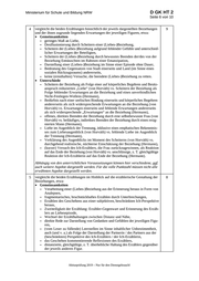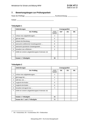 D GK HT 2 Ministerium für Schule und Bildung NRW Seite 8 von 10 7. Bewertungsbogen zur Prüfungsarbeit Name des Prüflings: ____________________________________ Kursbezeichnung: ____________ Schule: _____________________________________________ Teilaufgabe 1 Anforderungen Lösungsqualität Der Prüfling maximal erreichbare Punktzahl 1 verfasst eine aufgabenbezogene … 3 2 gibt den Inhalt … 6 3 erläutert die Beziehung … 9 4 untersucht erzählerische Gestaltungsmittel … 8 5 untersucht sprachliche Gestaltungsmittel … 8 6 formuliert eine reflektierte … 4 7 erfüllt ein weiteres aufgabenbezogenes Kriterium: (4) …………………………………………………………….. …………………………………………………………….. Summe 1. Teilaufgabe EK 2 ZK DK 38 Teilaufgabe 2 Anforderungen Lösungsqualität Der Prüfling 2 maximal erreichbare Punktzahl 1 verfasst eine aufgabenbezogene … 3 2 gibt knapp den … 4 3 stellt dar, wie … 7 4 vergleicht die beiden … 9 5 vergleicht die beiden … 8 6 formuliert abwägend eine … 3 7 erfüllt ein weiteres aufgabenbezogenes Kriterium: (6) …………………………………………………………….. …………………………………………………………….. Summe 2. Teilaufgabe 34 Summe der 1. und 2. Teilaufgabe 72 EK = Erstkorrektur; ZK = Zweitkorrektur; DK = Drittkorrektur Abiturprüfung 2019 – Nur für den Dienstgebrauch! EK ZK DK