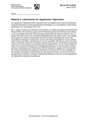 BI LK HT 3 (GG) Seite 2 von 5 Name: _______________________ Material A: Lebensweise der Ägyptischen Tigermücke Die Ägyptische Tigermücke (Aedes aegypti) ist eine vorwiegend in den Tropen und Subtropen verbreitete Stechmücke und die hauptsächliche Überträgerin von verschiedenen viralen Krank- heitserregern wie zum Beispiel Zika-Viren. Bei A. aegypti ernähren sich Männchen und Weibchen von Nektar und anderen nährstoffreichen Pflanzensäften. Die Weibchen saugen nach der Befruchtung Blut beim Menschen und erhalten so die notwendigen Nährstoffe für die Eireifung. Beherbergen die Mückenweibchen Viren, so können diese beim Stich in das menschliche Blutgefäßsystem übertragen werden. Zur Eiablage bevorzugen die weiblichen Tigermücken Pfützen und andere Kleinstgewässer in der Nähe menschlicher Siedlungen. Trockenzeiten, die trotz der häufigen Regenfälle in Tropen und Sub- tropen vorkommen, können die Mückeneier sehr gut überstehen. Die Mückenlarven entwickeln sich im Wasser über mehrere Larvenstadien und ein Puppenstadium, aus der Puppe schlüpft die adulte Form. Klassische Methoden der Schädlingsbekämpfung wie Austrocknung der Kleinst- gewässer, Insektensprays und Moskitonetze führten bislang bei A. aegypti nicht zum dauerhaf- ten Erfolg. Flächendeckend ausgebrachte Insektizide verursachen hohe Kosten, schädigen an- dere Insekten und bergen eventuell Risiken für den Menschen. Daher wird zurzeit die Freiset- zung genetisch veränderter, transgener Tigermücken-Männchen erforscht, um die Populationen der Tigermücken dauerhaft einzudämmen. Abiturprüfung 2019 – Nur für den Dienstgebrauch!