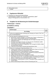 Ministerium für Schule und Bildung NRW D GK NT 3 Seite 3 von 9 4 untersucht die Gestaltung des Raumes und der Atmosphäre, etwa: • relativ geschlossener Schauplatz im Außenbereich eines ehemals landwirtschaft- lichen Gebäudekomplexes, mit Scheune, Stall und Schuppen, zur Gruppe um den Ich-Erzähler gehörend, • auffällige Gestaltung von Räumen durch deren Abgrenzungen sowie der Übergangs- möglichkeiten (Tore, Türen, Schwellen, Gassen) zur Erzeugung eines Innenraums, dem Hof als Schauplatz der Erzählung, und einem Außen der Herkunft von Vincent, • z. T. archaisch, unwirklich anmutende Verweise, • Gestaltung des zeitlichen Rahmens und der Atmosphäre: früher Morgen, Kälte, Atemwölkchen, • Verweis auf Außenwelt: Vincents Auftauchen durch das versehentlich nicht ge- schlossene Tor, • gehäufte Verweise auf Winter und Kälte, wie z. B. kahle Äste, Wintergras, • im Verlauf des Vormittags, mit Voranschreiten der Arbeit, sich auflösender Nebel, Sonne und auch durch die Arbeit verursachte Wärme (Entwicklung und Änderung des Wetters verbunden mit Vincents Auftauchen). 9 Angestrebt ist hier keine vollständige Darstellung der beispielhaft genannten Aspekte, sondern eine differenzierte Schwerpunktsetzung durch den Prüfling, die allerdings mehrere Gesichtspunkte aufgreift. 5 untersucht weitere erzählerische Mittel, etwa: • symbolische Aufladung einzelner Handlungen und Gegenstände, teilweise ohne konkrete Auflösbarkeit: Wärme, Kälte, Kohle, Raumsituation, Warten auf Vincent u. a. als Mittel zur Betonung der Bedeutung, • überwiegend parataktischer Satzbau, • gezielte, sparsame Verwendung von Adjektiven, insgesamt lakonisch anmutende Schilderungen, dadurch Betonung der archaischen, unbestimmten Atmosphäre, • personaler (homodiegetischer) Erzähler in der ersten Person Plural, • überwiegend Erzählbericht, geprägt von subjektiver (Innen-)Sicht mit vereinzelter Figurenrede, • teilweise Unsicherheiten des Erzählers im Hinblick auf die erzählte Handlung („Vincent war vier Jahre alt, soweit wir wussten, wurde er bald fünf“, Z. 28; „dann war sie krank geworden. Oder es war umgekehrt“, Z. 38 f.), • Fokussierung auf den Zeitpunkt der Begegnung der Gruppe mit Vincent, zudem Verweise auf Zeiträume lange vor der Begegnung und auf Vincents Zukunft, • Tempuswechsel (Plusquamperfekt, Präteritum) zur Markierung der unterschied- lichen Zeitebenen, z. B. beim Eintreffen von Vincent, • religiöse Anspielungen (Glorie, Hostie) als Verweis auf die sinnstiftende Bedeu- tung, • Einschub der Geschichte der Mutter von Vincent in Rückwendungen/Analepsen, • insgesamt: kontrastierende Darstellung von zeitlichen Bezügen der tatsächlichen äußeren Handlung und langfristigen Zeitspannen und z. B. jahreszeitlichen Ver- läufen. Angestrebt ist hier keine vollständige Darstellung der beispielhaft genannten Aspekte, sondern eine differenzierte Schwerpunktsetzung durch den Prüfling, die allerdings mehrere Gesichtspunkte aufgreift. Abiturprüfung 2019 – Nur für den Dienstgebrauch! 9