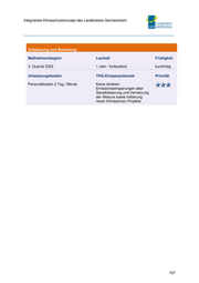 Integriertes Klimaschutzkonzept des Landkreises Germersheim Zeitplanung und Bewertung Maßnahmenbeginn Laufzeit Fristigkeit 3. Quartal 2022 1 Jahr / fortlaufend kurzfristig Umsetzungskosten THG-Einsparpotenzial Priorität Personalkosten 2 Tag / Monat Keine direkten Emissionseinsparungen aber Sensibilisierung und Vernetzung der Akteure sowie Initiierung neuer Klimaschutz-Projekte 107