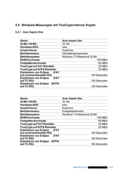 Name: Acer Aspire One 32-Bit / 64-Bit: 32- Bit Hardware-AES: nein Anzahl Kerne: SingleCore Betriebsmodus: Höchstleistungsmodus Betriebssystem: Windows 7 Professional 32-Bit RAM-Durchsatz: 750 MB/s Festplattendurchsatz: 50 MB/s TrueCrypt auf FAT-Ramdisk: 15 MB/s TrueCrypt auf NTFS-Ramdisk: 15 MB/s Extrahieren von Eclipse (FAT auf unverschlüsselter RD): 200 Sekunden Extrahieren von Eclipse (FAT auf TC-RD): 215 Sekunden Extrahieren von Eclipse (NTFS auf TC-RD): 215 Sekunden Name: Acer Aspire One 32-Bit / 64-Bit: 32- Bit Hardware-AES: nein Anzahl Kerne: SingleCore Betriebsmodus: Energiesparmodus Betriebssystem: Windows 7 Professional 32-Bit RAM-Durchsatz: 720 MB/s Festplattendurchsatz: 50 MB/s TrueCrypt auf FAT-Ramdisk: 15 MB/s TrueCrypt auf NTFS-Ramdisk: 15 MB/s Extrahieren von Eclipse (FAT auf unverschlüsselter RD): 200 Sekunden Extrahieren von Eclipse (FAT auf TC-RD): 215 Sekunden Extrahieren von Eclipse (NTFS auf TC-RD): 215 Sekunden Seite 84 von 107 | | 2010