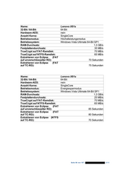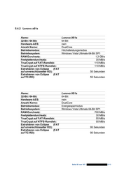 5.4.2 Lenovo x61s Name: Lenovo X61s 32-Bit / 64-Bit: 64-Bit Hardware-AES: nein Anzahl Kerne: DualCore Betriebsmodus: Höchstleistungsmodus Betriebssystem: Windows Vista Ultimate 64-Bit SP1 RAM-Durchsatz: 1,3 GB/s Festplattendurchsatz: 35 MB/s TrueCrypt auf FAT-Ramdisk: 110 MB/s TrueCrypt auf NTFS-Ramdisk: 110 MB/s Extrahieren von Eclipse (FAT auf unverschlüsselter RD): 50 Sekunden Extrahieren von Eclipse (FAT auf TC-RD): 55 Sekunden Name: Lenovo X61s 32-Bit / 64-Bit: 64-Bit Hardware-AES: nein Anzahl Kerne: DualCore Betriebsmodus: Energiesparmodus Betriebssystem: Windows Vista Ultimate 64-Bit SP1 RAM-Durchsatz: 700 MB/s Festplattendurchsatz: 30 MB/s TrueCrypt auf FAT-Ramdisk: 55 MB/s TrueCrypt auf NTFS-Ramdisk: 55 MB/s Extrahieren von Eclipse (FAT auf unverschlüsselter RD): 95 Sekunden Extrahieren von Eclipse (FAT auf TC-RD): 90 Sekunden Seite 85 von 107 | 2010